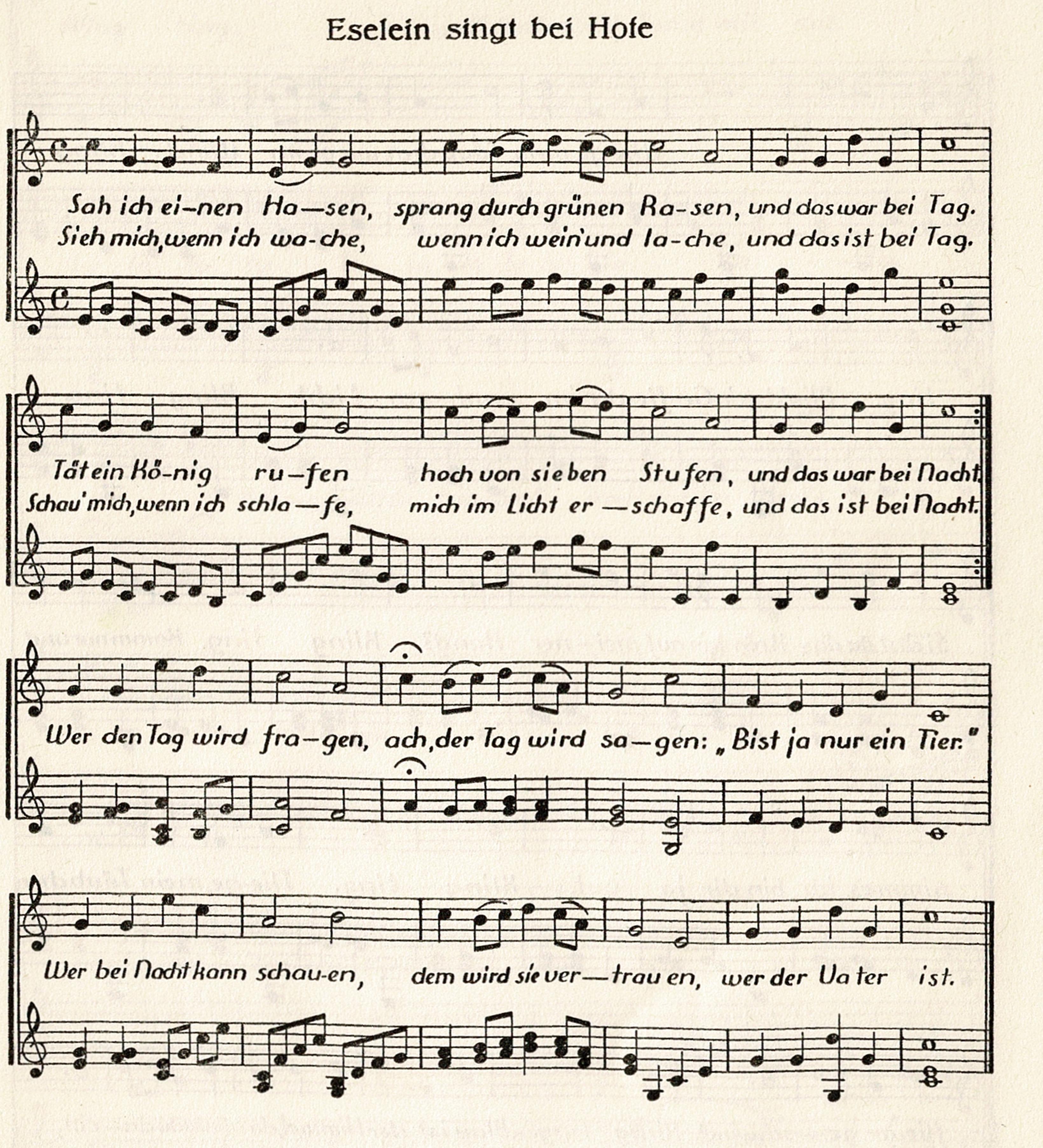 A man had a donkey, who for many a long year had carried his sacks to the mill. But now the donkey was growing old and was not fit for work, so his master thought that the poor animal was no longer worth his keep. The donkey well realized that his master held no good intentions towards him, so he ran away on the road to Bremen.