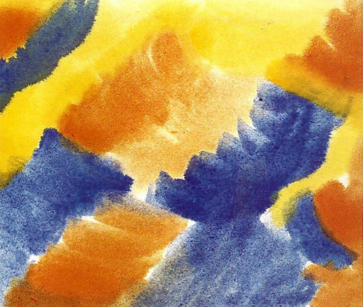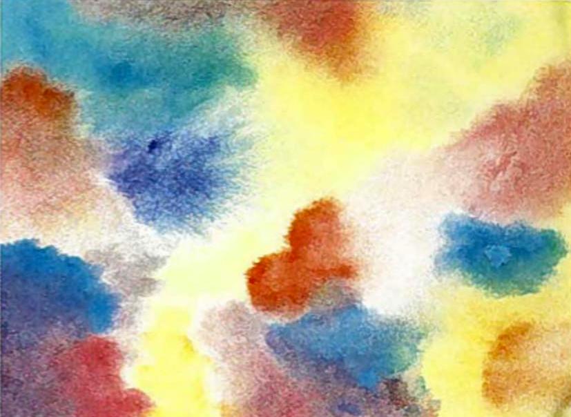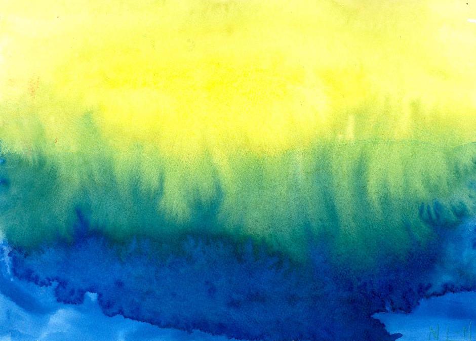 Als Kunstzinnig Therapeut Beeldend leg ik het ‘Zweeds therapeutenpapier’ bij het nat-in-nat schilderen zónder het vast te plakken op de schilderplank. Ik maak het papier aan beide zijden nat met een (natuur)spons en ik maak het daarna waar nodig weer iets droger met een stukje van een laken erop, vooral wanneer de cliënt iets te veel water heeft gebruikt. Bij het neerleggen zorg ik dat het papier goed plat ligt, zonder luchtbellen eronder. Vastplakken van het schilderpapier doe ik alleen bij sluieren, maar dat is een hele andere techniek, waarbij je een nat papier echt opspant, maar daarna juist schildert op het opgedroogde papier. De nat-in-nat schildering bobbelt soms inderdaad een beetje na het opdrogen, maar dat vind ik geen probleem. Ik zorg wel altijd dat het langzaam aan de lucht droogt en niet in de volle zon of boven een verwarming.