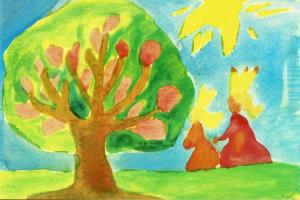 Het kind is bezig met kleur en dat is – uitgaand van Goethe – ook met kwaliteiten die in het gevoel mee-beleefbaar zijn, er is dus meer dan alleen de stoffelijke verf: er is ook een spirituele dimensie.