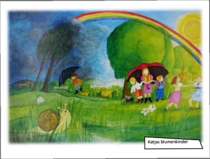 Een voorbeeld. U hebt ook het Engelse woord ‘fish’: Fisch. Laten we aannemen, dat we het kind ertoe laten komen dat het de vis schilderend tekenend, tekenend schilderend vanuit de kleur schept: