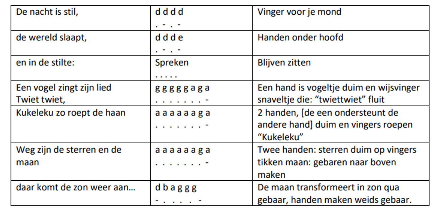 Als je het laat beginnen met tekenen/schilderen, het kleuren en vormen geeft, doet het hele lichaam mee. Wat het waarneemt, laat het in losse vormen nadoen; dan breng je wat in het beeld zit over naar de klank.