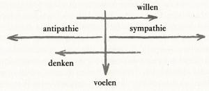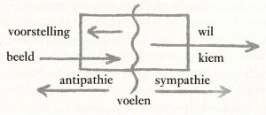 Hij spreekt over vijf vormen: de verhouding van handeling naar handeling of van handeling naar gedachte e.d. en hij zegt: een krachtige handeling is net zo goed als een zwakke. Hij kijkt naar de esthetische indruk, niet naar de wilsimpuls, en geeft aan het oordeel hoe het hem bevalt de uitdrukking ‘volkomenheid’. Zodat dus bij de volkomenheid niet het wilselement als wilsimpuls actief optreedt in de mens, maar zoals hij zegt: wanneer ik eens een keer iets sterker wil en een andere keer minder sterk, krijg ik de esthetische indruk dat het krachtige beter bevalt dat het zwakke. Daarom staat dat op de voorgrond.