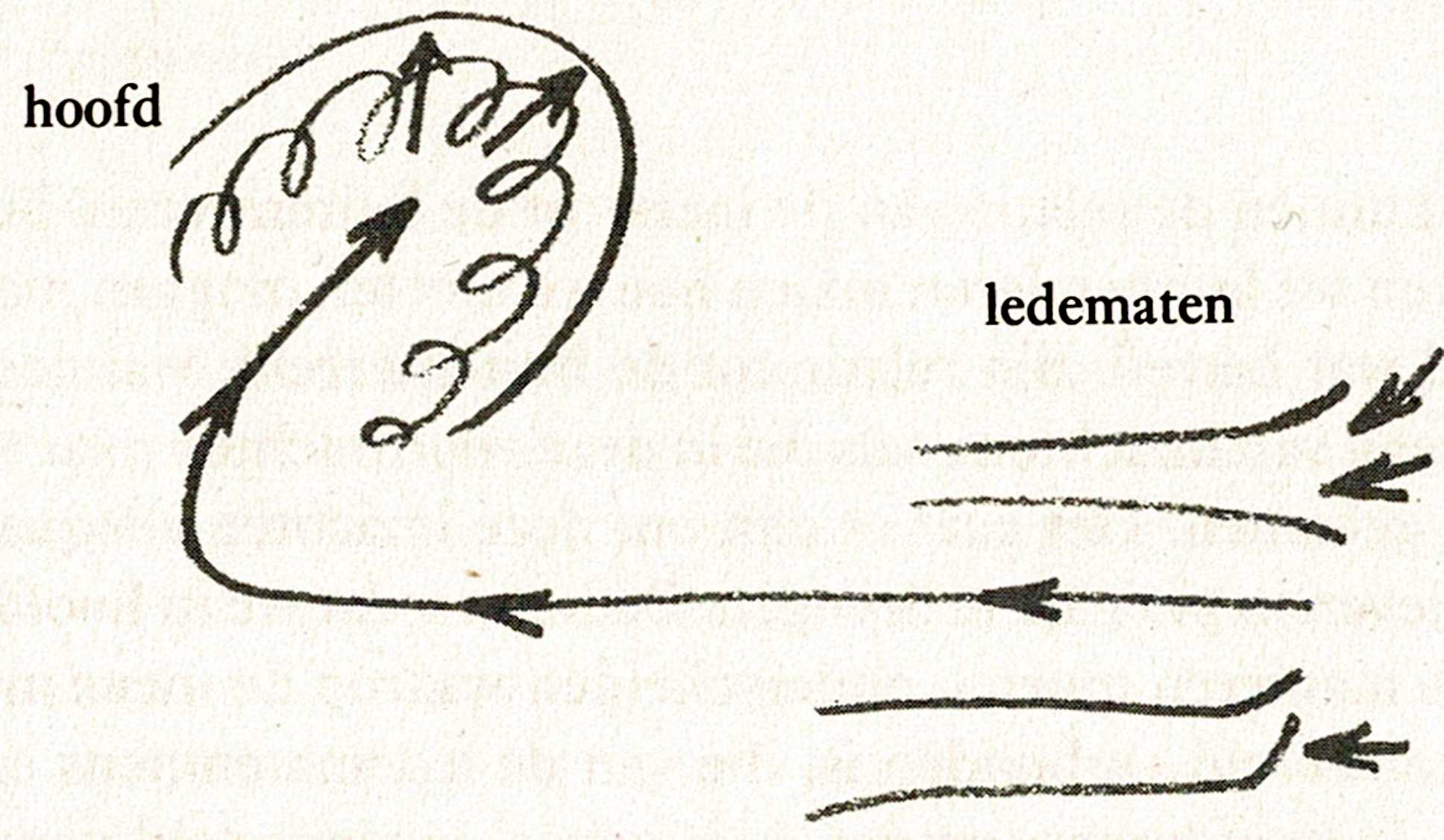 En wanneer je een abstract iemand bent en deze dingen vanuit abstracte uitgangspunten indeelt – dikwijls gebeurt dat zelfs, zodat het meest geschikte lesrooster ontstaat – dan heeft dat allemaal niets te betekenen. Je moet echter met het volgende rekening houden: wanneer je het kind voor je hebt en je brengt het iets bij van lezen, schrijven, rekenen wat in eerste instantie op het gevoel werkt, dan vindt in het organisme een proces plaats waaraan je duidelijk kan zien hoe alles wat we van het hoofd vragen, polair tegenovergesteld werkt aan wat we van de ledematen, van het bewegingssysteem, het motorische systeem vragen. Het is zeker niet waar dat je bijv. minder moe wordt bij gymnastiek dan bij het leren van lezen en schrijven.