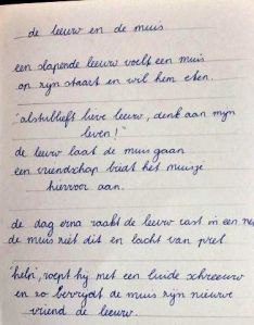 Dat [het gaat hier over twee tegen elkaar inwerkende krachten – zie voordracht] wordt tussen het negende en het tiende jaar een spannende opgave, als het kind dan als gevolg van het tegen elkaar botsen van deze twee krachten in een toestand verkeert waarbij het feitelijk alle mogelijke kanten uit zou willen gaan en dat het van de opvoeder en de leerkracht afhangt of deze wellicht op het juiste ogenblik tussen het negende en het tiende jaar voor het kind de goede raadgever is, het juiste tegen hem zegt of hem dat juist onthoudt enz.