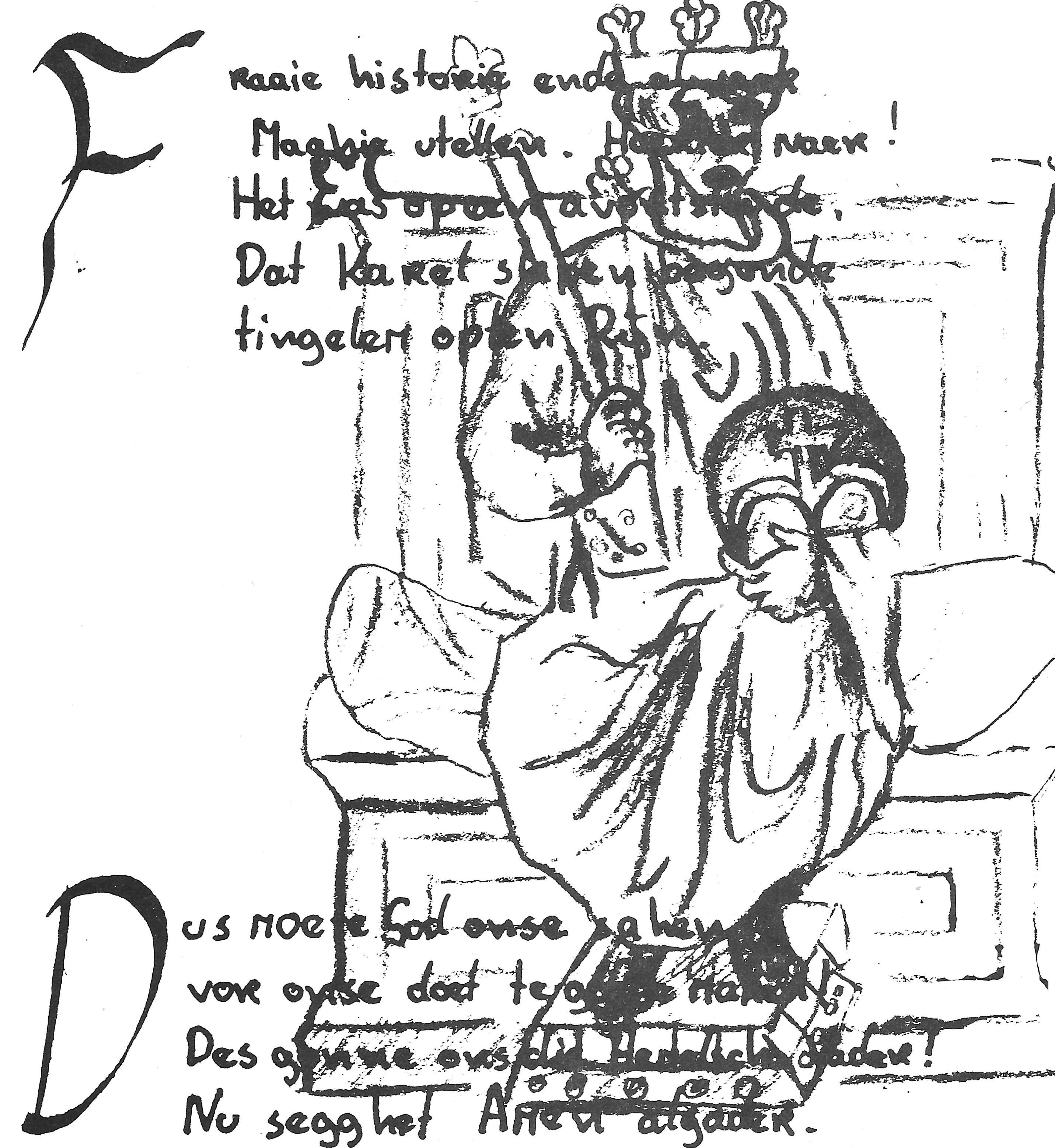 Het periodeschrift, het zelfgeschreven leerboek, moet deze keer een echt Middeleeuws boekwerkje worden: mooi geschreven, met veel tekeningen, versierde beginletters, randversieringen, kortom alles wat het principe van de Middeleeuwen, waar tekst en beeld altijd samen gingen, gestalte geeft.