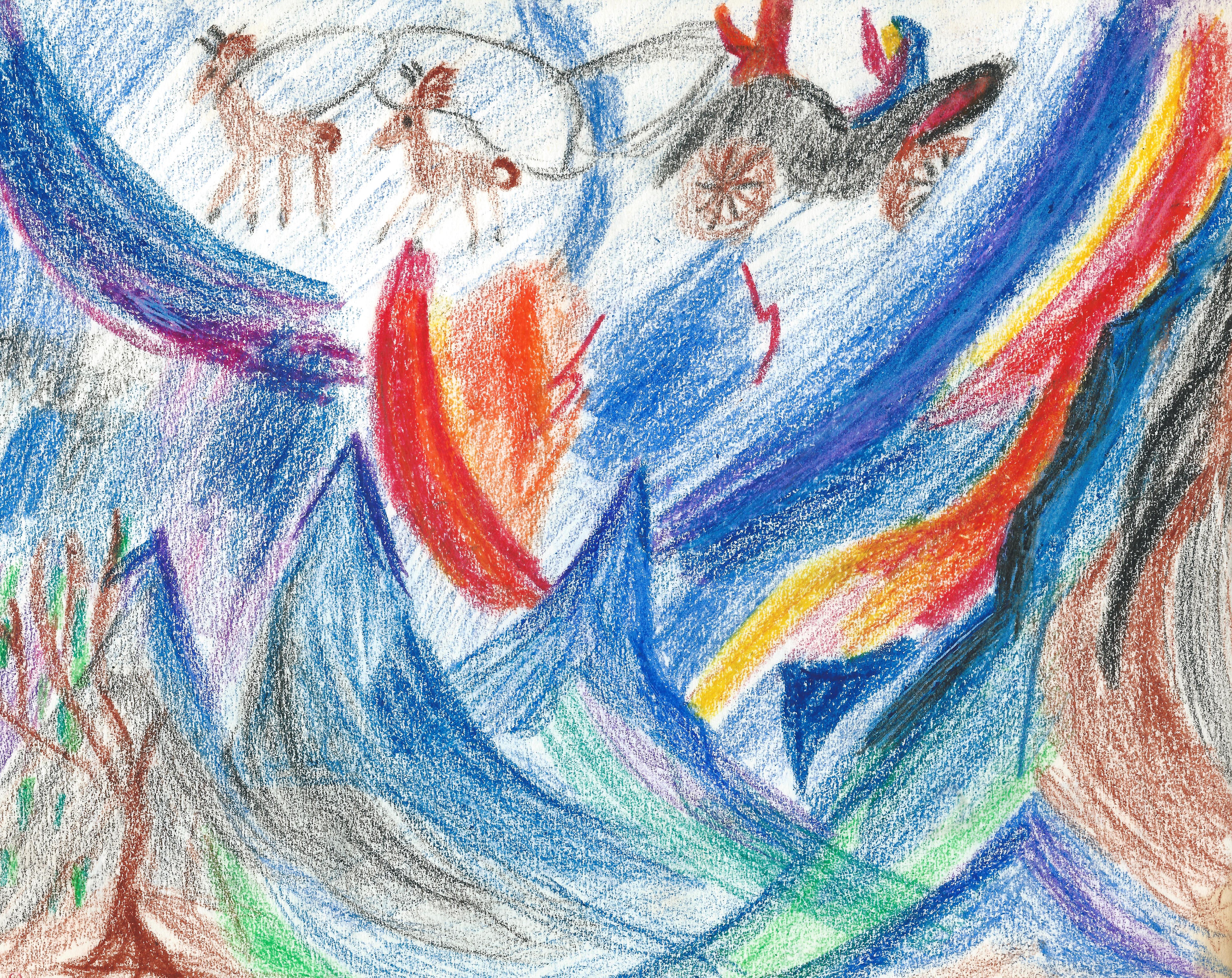 Yggdrasil nannte man die Weltesche, in der sich die Weltenkräfte zusammengezogen hatten. Ein Mensch wird abgebildet in dem Moment, wo er sich seines Ich bewußt werden soll, wo aus seinem Innern heraustönen soll das Wort «Ich». «Yggdrasil» ist soviel wie «Ich-Träger». Ich-Träger ist dieser Baum. «Ygg» ist «Ich» und «drasil» ist derselbe Wortstamm wie «tragen».