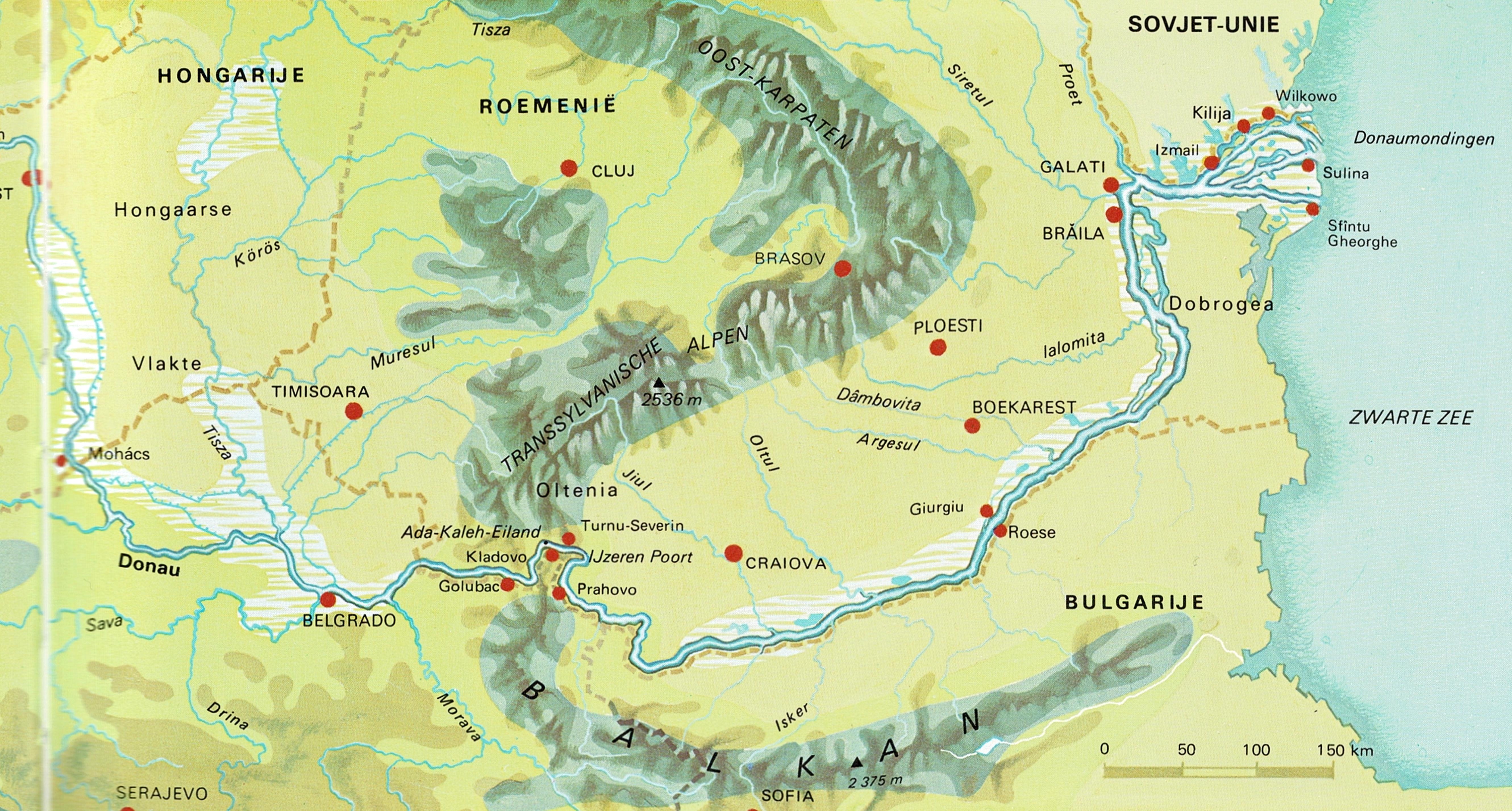 Nadat de Donau als overwinnaar in de strijd tussen water en rotsen uit de bus is gekomen, kan hij van het leven gaan genieten. Hij is nu een rivier die op een zee begint te lijken – even saai… Hier ligt het ‘Kleine Walachije’ (Oltenia), met zijn grote, bloeiende steden Turnu Severin en Craiova, de rijke tarwevlakte en het thuisland van de taaie Olteniër die ‘tweeëndertig kiezen bezat’. Traag stroomt de rivier in de richting van de Zwarte Zee, die reeds het slop van Europa werd genoemd. Het graniet van de Dobrogea op zijn rechteroever ontzegt hem elke toevoer; alleen van links, vanuit de Karpaten, voeden hem waterrijke, soms wilde, soms kalme, maar altijd vruchtbaarheid brengende zijrivieren, zoals de Jiu, de lieflijke Oltul, de Dambovita waaraan Boekarest ligt, de Argesul, de lange Siretul en de eindeloze Proet, die eens de grens met Rusland vormde. Vandaaruit drongen de legers van Catharina de Grote door tot bij Izmail, om de Balkan van het juk der ongelovigen te bevrijden. Daar bestormde de beroemde maarschalk Soevorov, wiens durf legendarisch is geworden, aan het hoofd van een handjevol kozakken en tegen de aanwijzingen van zijn hoogste bevelhebber in, de Turkse vesting, stak de kleine riviervloot van de Osmanen in brand en sabelde de Janitsaren neer van pasja Anduslu die had gezegd: ‘Eerder zal de Donau terugstromen dan dat ik me overgeef.