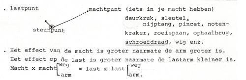 =koevoet, breekijzer. (Het effect van de kracht is groter naarmate de arm groter is). Boomstam als hefboom, auto optillen.
