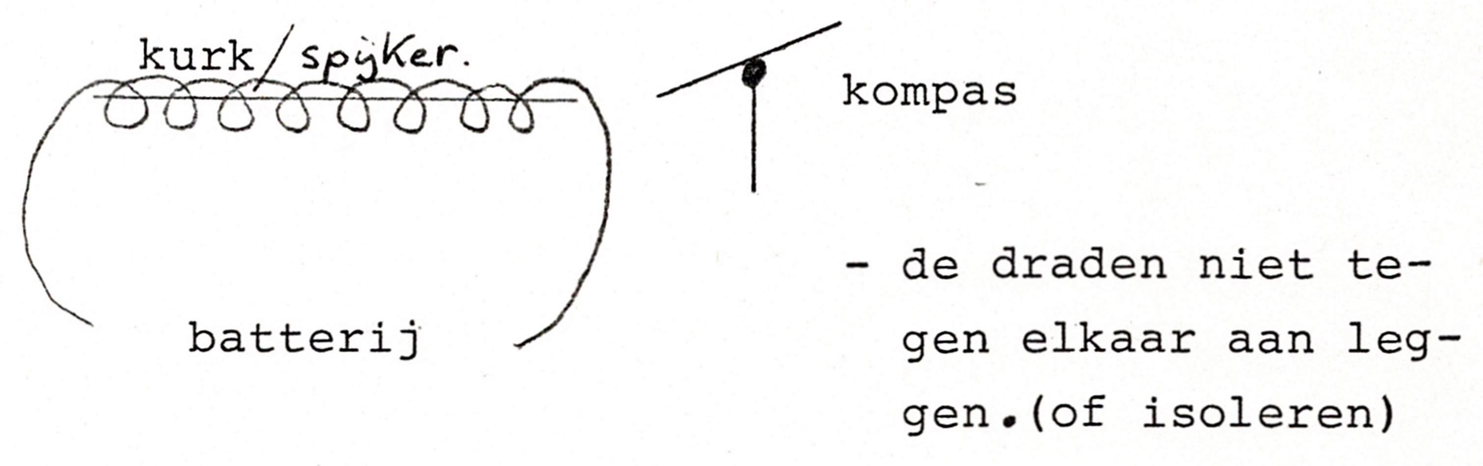 – Maak een electro-magneet (koperdraad op een spijker(s)) (batterij 4,5V)
