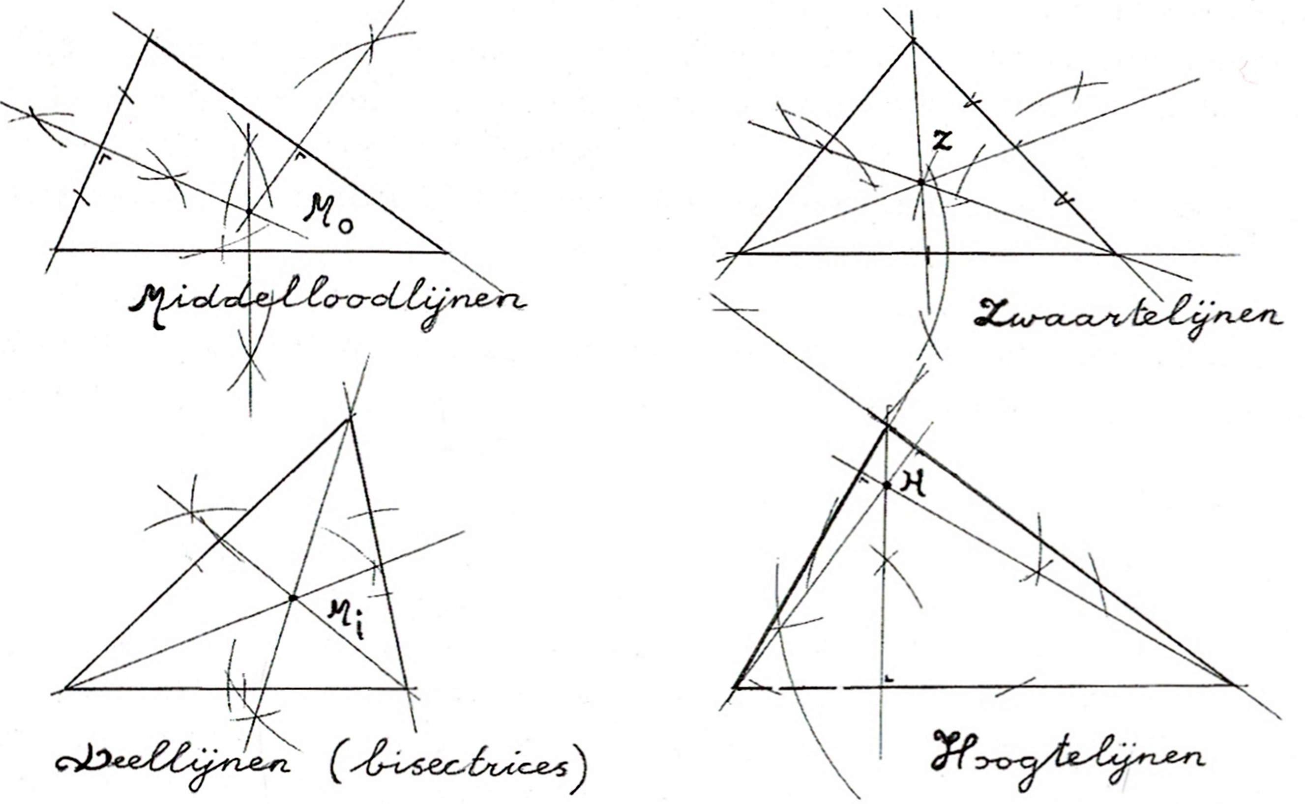 oplossen van vergelijkingen, de aanschouwelijke bewijzen van de stelling van Pythagoras, het begrip meetkundige plaats en de platonische ruimtelichamen.
