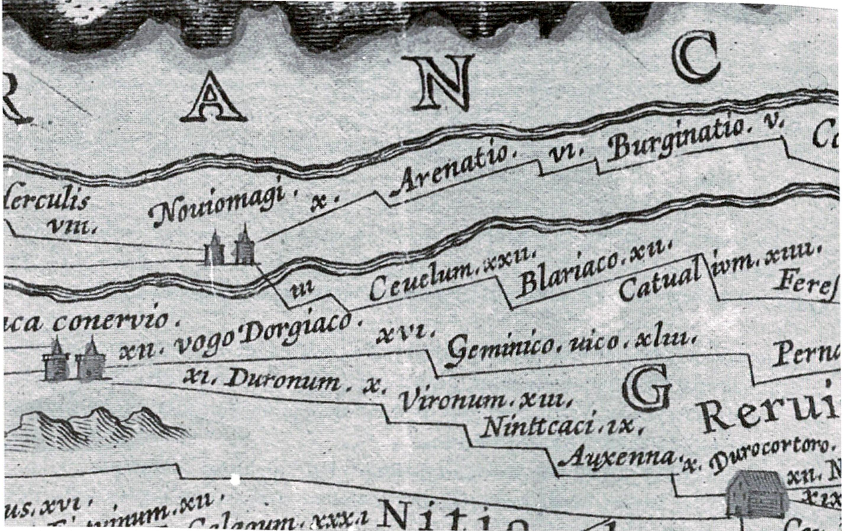 “Pak een grote passer en probeer nu zelf te ontdekken welke plaats bedoeld kan zijn met de naam BLARIACO. Deze ligt aan de Maas en is XXV leuga’s verwijderd van NOVIOMAGI. Krijg je zelf geen ‘brain wave’ gebruik dan een of meer van de onderstaande suggesties.”