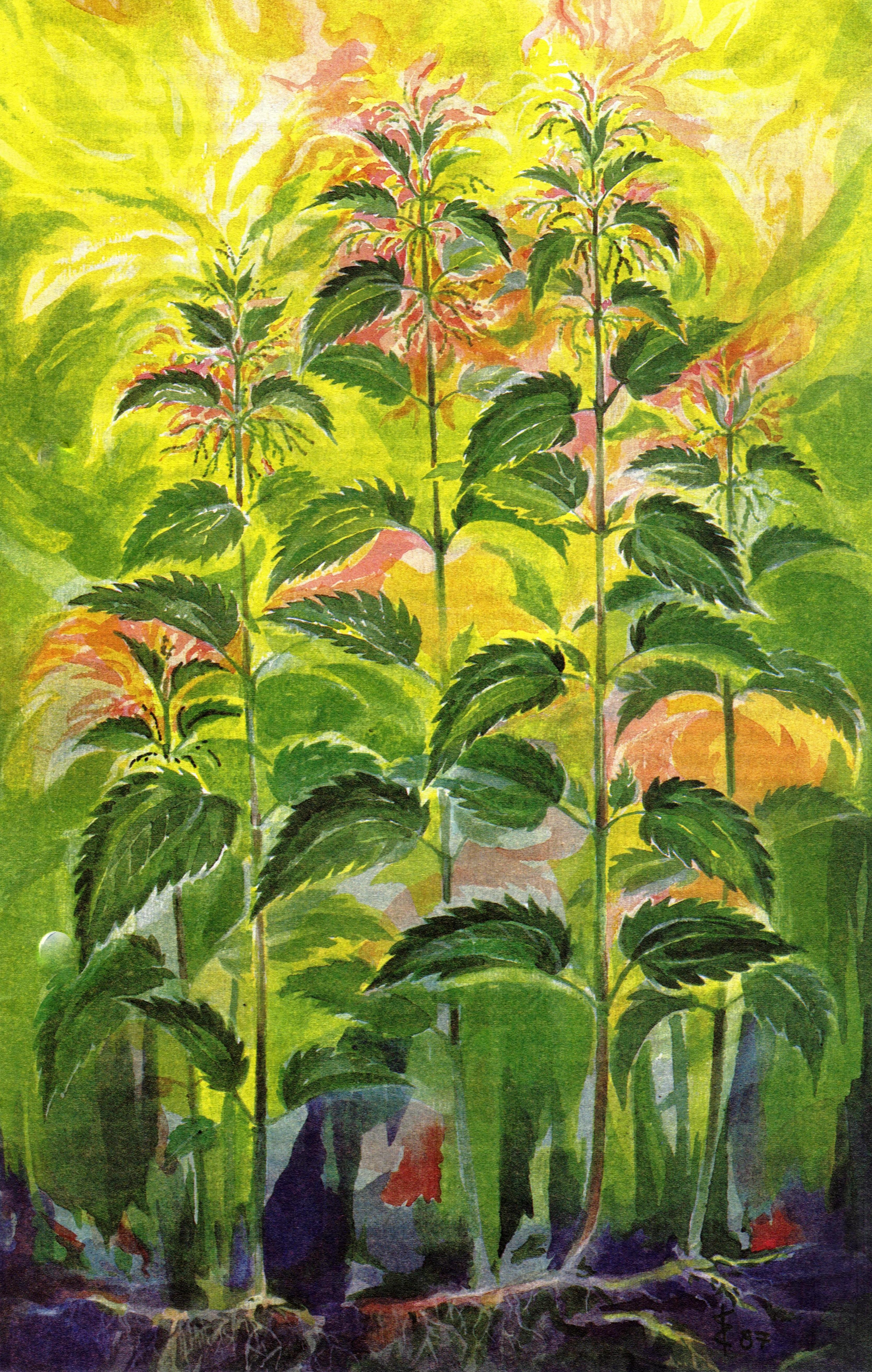 2. In haar relatie tot de eveneens driegelede mens komen de wortelprocessen overeen met de activiteiten van de hersenen en de zintuigen (zenuw-zintuigstelsel), de tegengesteld gerichte bloeiprocessen komen overeen met de activiteiten van de menselijke stofwisseling (stofwisseling-ledematensysteem) en de evenwicht brengende processen van het blad komen overeen met het systeem van hart en longen van de mens (ritmische systeem) (zie Willem F. Daems: Mensch und Pflanze). Daarmee is de vraag wat een plant – bijvoorbeeld een berk – tot geneeskrachtige plant maakt nog niet beantwoord. De geesteswetenschappelijke beschouwing van de schepping en evolutie laat zien dat de mens een samenvatting is van de natuur en de natuur een oneindig verbreide mens. (zie: Willem F.Daems: Anthroposofie und ihre Heilmittel) De onderzoeker is in staat om de planten die in de tijd dat de organen van de mens werden gevormd, gelijktijdig in de natuur werden geschapen – te “schouwen”. Zo zijn bijvoorbeeld het vingerhoedskruid, de melisse en talrijke andere geneeskrachtige planten die op het hart inwerken tegelijkertijd met het hart van de mens ontstaan. De “normale strijdsituatie” binnen de polariteit van zenuw-zintuigactiviteit en het stofwisselingsgebied is de basis voor onze individuele gezondheid. Onregelmatigheden en stoornissen, van welke aard dan ook, leiden hier tot ziekten. De planten die met deze ziekteverschijnselen van het menselijk organisme overeen komen worden door een afwijking, een vervorming of vertekening, zij het in de gestalte, zij het in de levensprocessen of tegelijkertijd in beide gebieden, tot geneeskrachtige planten. Een voorbeeld: een plant met extreme wortelvorming (t.o.v. de bladvorming of de bloesem) wordt tot wortelachtige geneeskrachtige plant, zoals de heggenrank (Bryonia) dat zo uitstekend laat zien. Deze plant werkt bij voorkeur in het gebied van het zenuw-zintuigsysteem. Nog een voorbeeld van het gelijktijdig optreden van twee “abnormale” fenomenen: de cactus, die men wel “koningin van de nacht” noemt, bloeit pas wanneer het donker wordt, in de zomer op de late avond – dat is dus een abnormaal verschijnsel van het bloeiproces – en dit geheel heeft geen normale bladeren, maar heeft nerven die door uiterste reductie zijn gevormd. Deze tweevoudige “vertekening” in het ritmische gebied maakt de plant tot geneeskrachtige plant voor het hart.