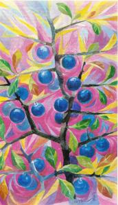 Het slee in de naam sleedoorn komt mogelijk van ‘Slehe’, pruimpje. De sleedoorn is waarschijnlijk de voorouder van onze pruim. Pruimen, kersen, amandelen, abrikozen en perziken, botanisch gesproken de prunussen, zijn leden van de rozenfamilie. Andere vruchtbomen als de appel en de peer horen bij deze familie, maar ook plantjes als de aardbei. De vruchten in de rozenfamilie bestrijken een heel scala aan vormen. De roos heeft bijvoorbeeld een vrij droge vrucht, andere vruchten zijn juist sappig. De zaden of pitten zijn ook divers. Kersen en pruimen zijn zogenaamde steenvruchten. De sleedoorn valt daar ook onder en heeft een kleine blauwe harde vrucht met een harde pit. De vrucht is heel droog, eigenlijk meer pit dan vruchtvlees. Erin bijten is een belevenis. In tegenstelling tot de verwachting is de smaak erg droog, wrang en stroef, en onder dat dun laagje vruchtvlees stuit je op een steenharde pit. De rijping van deze vrucht verloopt traag. De sleedoorn bloeit als een van de eersten, maar als de zomer aanbreekt en vruchten van andere struiken en bomen in de zomerzon groeien en rijpen, blijft de sleedoorn-pruim groen en groeit heel gestaag. Pas in de late herfst is hij volgroeid en enigszins rijp. De smaak is dan nog altijd erg wrang. Naast wat suiker en vitamine C bevat hij namelijk looistoffen en zuren. Er is nog nachtvorst nodig voordat hij enigszins ‘te pruimen’ is en bruikbaar wordt voor uitkoken en sap trekken. Maar dan is er ook een sap gewonnen wat de taaie levenskracht van deze doornige struik bevat! Wat hier langzaam groeit en rijpt heeft een sterk gebundelde kracht, een taaie vitaliteit. Bij uitputting of na herstel van ziekte is dit sleedoornsap dan ook heel geschikt om de eigen vitaliteit als het ware van de grond af aan weer op te bouwen.