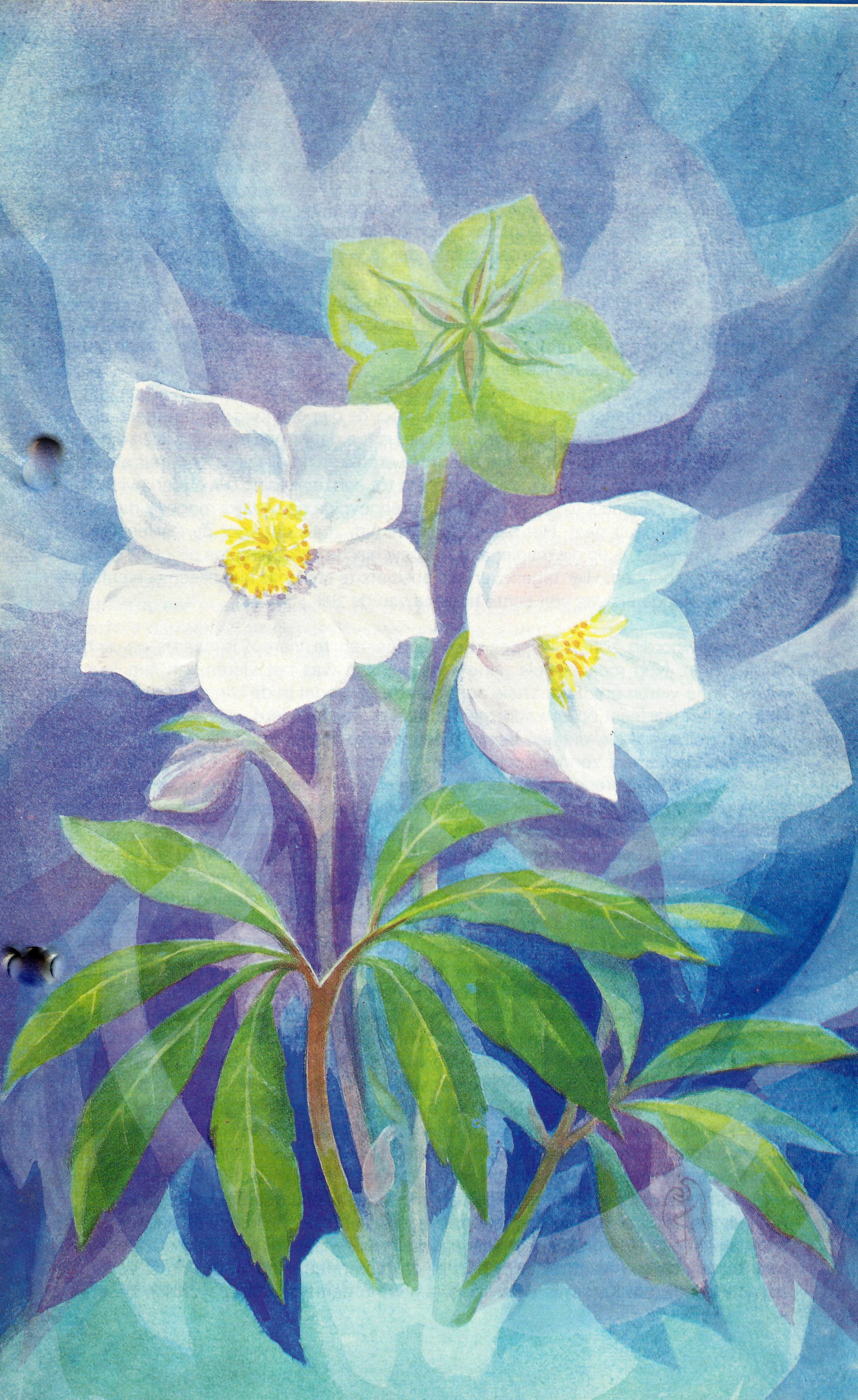 Je kunt in zulke noordelijke streken niet zo maar zeggen, welke planten je tegen zal komen omdat je je op deze of gene hoogte bevindt. Of een gebied naar de zon toeligt, of dat het in de schaduw ligt, kan in dit gebied van scherpe tegenstellingen al bijna het verschil betekenen van zomer en winter. Het hooggelegen dal, waar onze tocht nu door voert, ligt tegen de noordhelling. Het is nog steeds met een laag van meerdere meters diepe sneeuw bedekt. Nog voor het grootste deel onder de sneeuw verborgen, liggen drie meren, het ene achter het andere. Dus is voorzichtigheid geboden, omdat de ijslaag aan het smelten is. Je hoort het klotsen van het ijskoude, kristalheldere water. Een gletsjer hangt aan de andere kant van het dal en toont een smaragdgroene breukplaats, juist daar, waar hij in het middelste meer afkalt, d.w.z. afbreekt. Hier bevinden we ons nog midden in de winter, hoogstens in februari, het is bijna ondraaglijk licht. Maar de zon heeft al een deel van de met grind bedekte helling blootgelegd. En daar is het plantenleven al weer! Het is de sneeuwboterbloem die zachtjes in de wind beweegt. Een paar bloemsteeltjes maar met slechts twee of drie blaadjes. Het spel van het morgenlicht in deze doorschijnende bloemblaadjes is een spel van kleuren op een donkere aarde. En het kan nog niet lang geleden zijn dat de sneeuw daar verdwenen is, want blaadjes en steel zijn nog bleek. Een klein bloembed te midden van de dodelijke wildernis. Zoveel schoonheid ook daar waar maar zelden een mens komt.