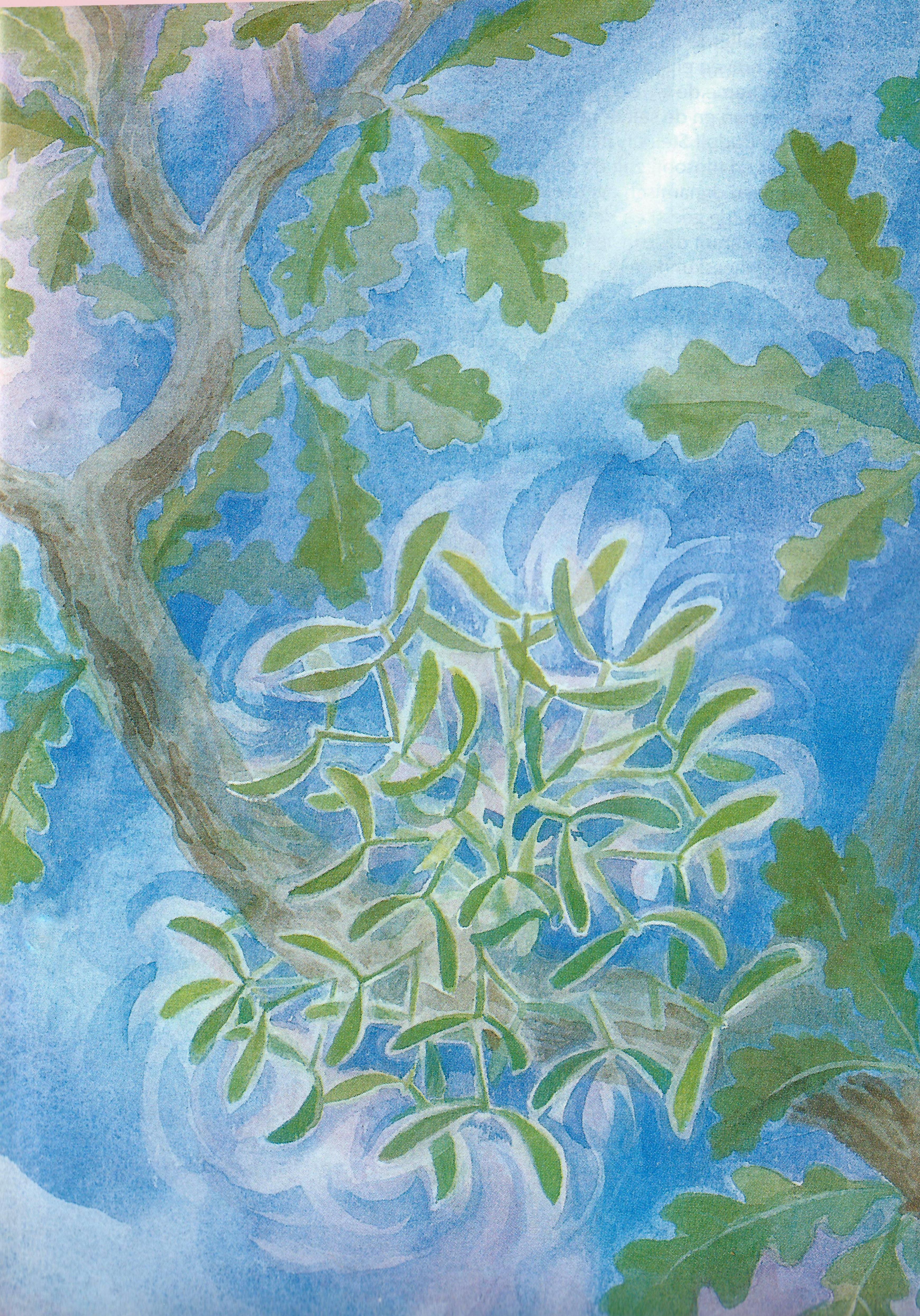 Spar (Picea excelsa) en zilverspar (Abies alba). Hoe sterk verschilt de stemming in een echt naaldbos van een loofbos met zijn wisselend spel van het licht! Het naaldbos met zijn eenvormige gedaanten, het jaarverloop nauwelijks weerspiegelend, is een beeld van rust en duurzaamheid. Niet rijk vertakte typisch gevormde boomkronen, maar de machtig omhoog reikende, tot in de top doorlopende stammen verbazen ons. Saamgetrokken, verharde, donkergroene naalden bekleden i.p.v. veelvormige, aan elk zuchtje overgegeven bladeren, de takken. De ritmen die hier invloed hebben zijn traag. Wel 10 jaren kunnen de naalden aan de twijgen blijven, tientallen jaren verlopen tot aan de eerste bloei en één zomer is voor het volledige rijpen van de donkere dennenappels veel te kort. Zelfs als zij zijn afgevallen, verzetten de naalden zich nog lang tegen verrotting en bedekken zij in dikke, nauwelijks door vegetatie overgroeide lagen de bodem. De naaldbomen horen bij het noorden en de gebergten. De vlugger omhoogschietende spar, tegenwoordig op de onzinnigste plaatsen aangeplant, dringt verder op naar het noorden dan de langzamer groeiende, maar ouder en groter wordende den. Het licht-afwijzende, in hoge mate naar compactheid neigende substantievormende element is evenwel slechts één kant van het wezen der naaldbomen, want onverbrekelijk hoort er ook de pittige, verkwikkende geur bij die iets verraadt van de naar binnen gekeerde warmteprocessen, die hout en naalden met hars en etherische oliën doordrenken. De snel ontvlambare hars komt bij de geringste verwonding tevoorschijn; knoppen en vruchten zweten hem zelfs dikwijls uit. Door destilleren wordt de hars in terpentijn en colofonium gesplitst. Bloeiprocessen, die zich in de kleine, rode kegelvormige bloesems en de groene meeldraden slechts aarzelend uitleven, zijn hier als aromatische substanties over de hele plant verdeeld. De weldadig, vooral de ademhalingsorganen gunstig beïnvloedende werking van de geurige boslucht kan nog geïntensiveerd worden, als men de kruidige etherische oliën door middel van stoomdestillatie wint en bijvoorbeeld aan het bad toevoegt. Zij werken dan ook rustgevend en evenwichtscheppend op het tegenwoordig ten gevolge van een overmaat van uiterlijke prikkels “gewonde” innerlijk van de mens. Het heeft zijn betekenis als wij met Kerstmis een naaldboom, versierd met brandende kaarsjes, in de kamer zetten en wij het verinnerlijkte bloesemvuur in de donkerste tijd van het jaar ook uiterlijk laten verschijnen.