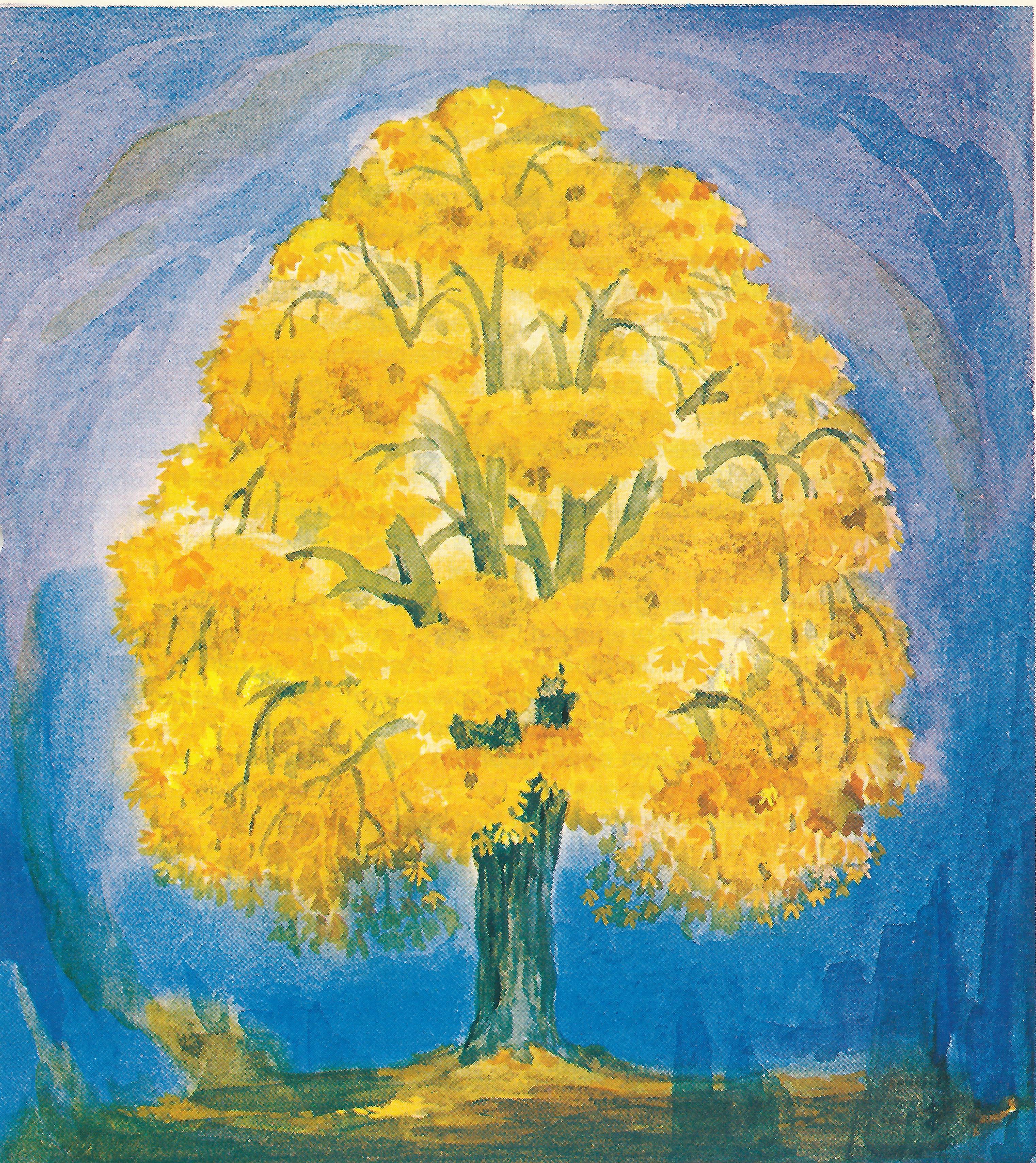 Zo vinden wij de berk het mooist; zo willen we aan haar denken. Voor de tweede keer is het een genot naar de berk te kijken, wanneer in de herfst de blaadjes lichtend geel verkleuren.