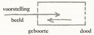 Dan moet men heel goed tot zich laten doordringen dat in het simpele tekenen al een element van onwaarheid schuilt. Het meest waar is het ervaren vanuit de kleur, iets minder waar is al het ervaren vanuit het licht-donker en het minst waar is het tekenen. Het tekenen komt als zodanig al dicht bij het abstracte dat als sterfproces in de natuur aanwezig is. Wij zouden eigenlijk alleen zo moeten tekenen, dat we ons daarbij bewust worden dat we in feite het dode tekenen. We zouden met kleuren zo moeten schilderen dat we ons daarbij bewust zijn dat we uit het dode het levende te voorschijn roepen. Wat is bijvoorbeeld de horizonlijn?