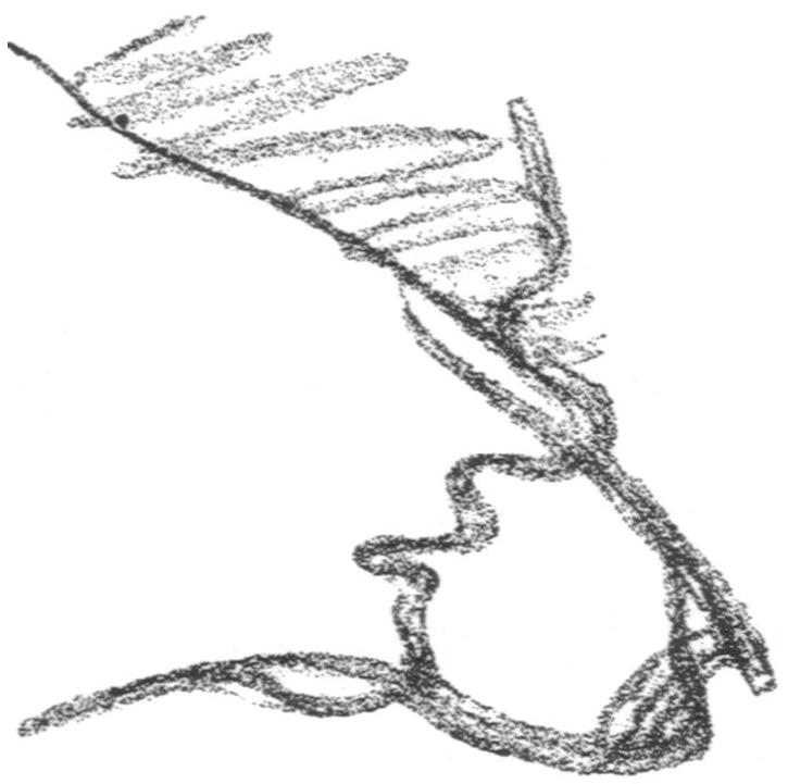*Anke-Usche Clausen voegt op blz. 130 van haar ‘Zeichnen ist Sehen lernen’ bij ‘metamorfose mens-dier’ deze tekening toe: