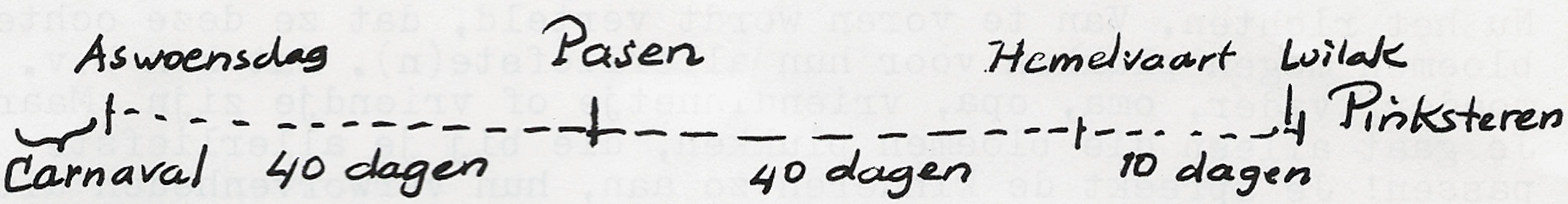 Dit was dan het een en ander over de oeroude, de heidense ondergrond der vastenavondgebruiken. Ondergrond, meer niet. Het valt te begrijpen, dat de rooms-katholieke kerk – die in veel gevallen niet radicaal ingaat tegen vastgewortelde inzettingen – op deze zuiverings- en vruchtbaarheidsorgie, dit contact (via demonische gestalten) met de in de ‘wendetijd’ wederkerende voorouders, haar eigen christelijk stempel heeft gedrukt. Zij laat het vlees zich uitleven, maar op Aswoensdag haalt men zijn kruisje ten einde zich in de Grote Vastenperiode van veertig dagen te bezinnen op het lijden des Heren. Vlees en Geest worden op zo’n manier tot een synthese gebracht, die de mensheid zozeer behoeft, wil zij niet in ijdelheid verloren lopen. Het zich uitleven, van de éne zondag (aanvankelijk het begin van de vasten) uitgebreid naar de erop volgende maandag en dinsdag, gaat aan de onthouding vooraf. Men zou zeggen: dit is de omgekeerde wereld. Normaal lijkt het werk en de soberheid, waarna komt als schone bekroning de welverdiende feestvreugde. Maar is het toch ook weer niet zo, dat een boetvaardig kind zal menen zich heldhaftiger te gedragen, wanneer het, om zichzelf te straffen, na de eerste chocolaadjes de doos opbergt, dan wanneer het nooit chocolaadjes geproefd heeft? Deze huiselijk-psychologische verklaring leest men in de Nieuwe Rotterdamsche Courant van 5 maart 1935.