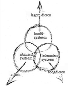 Rudolf Steiner gebruikte opnieuw het beeld van de uitgebreide mens, waarbij elk dier begrepen moest worden als een eenzijdig orgaanstelsel.
