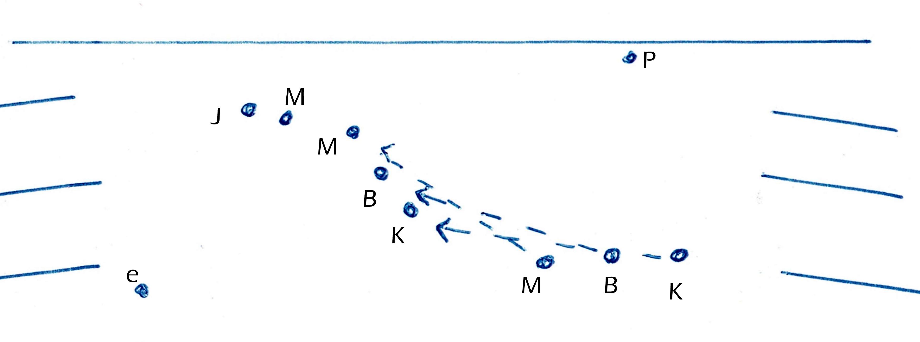 Dat hij zelf gegroet wil worden pikken zijn medespelers nog net, maar als hij hetzelfde eerbetoon voor zijn hoed vraagt wordt hij te grazen genomen; één pakt zijn hoed af en gooit die naar een ander. Het wordt dan duidelijk tijd de boel af te ronden! Hij pakt/krijgt zijn hoed terug, groet de leermeester, de regisseur en met een stralend, groots gebaar van hoe aan alles is gedacht en alles is gegroet kan het eigenlijke spel beginnen.