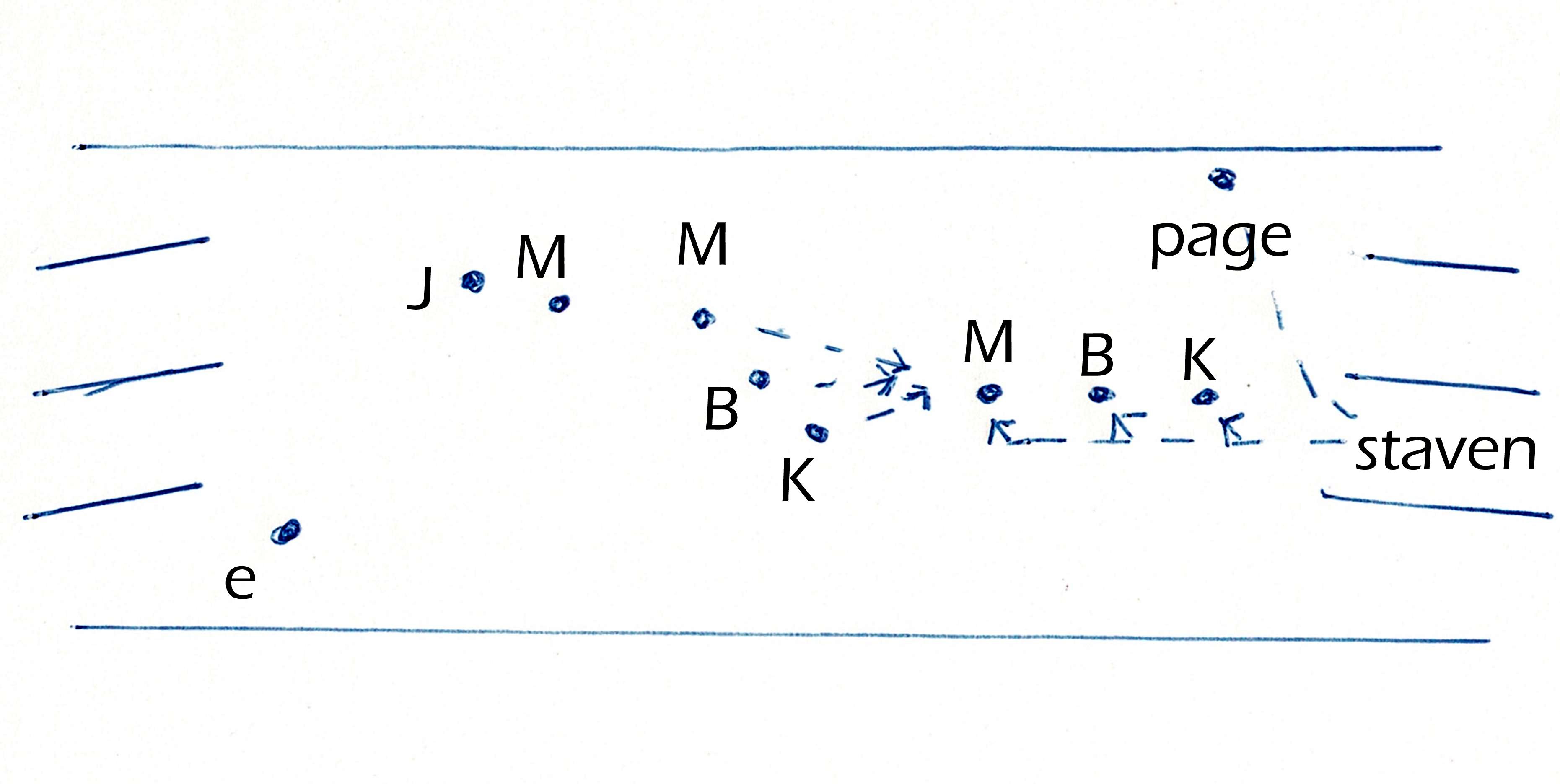 Maar… de zaak moet weer op orde komen en de sterrenzanger zegt dus: “laten we ’t anders beginnen” en concentreert op de bij uitstek heldere vorm van de “star”, het kristallijne. Iedereen vindt z’n plek weer, eventueel kan die oude dove Chrispijn, die nog ergens rondscharrelt er nog even bijgeplukt worden.