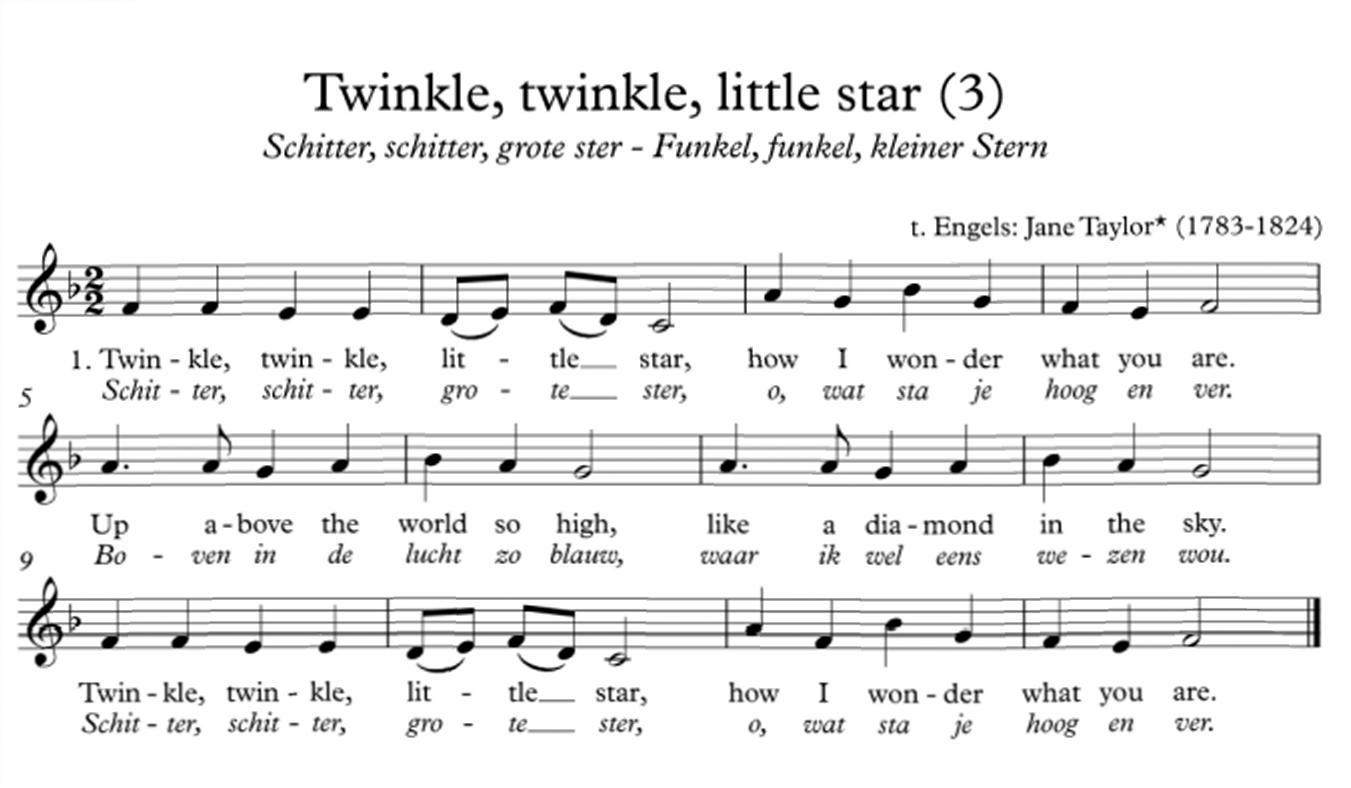 “Hoog aan de hemel de sterrenschijn, in onze handen een