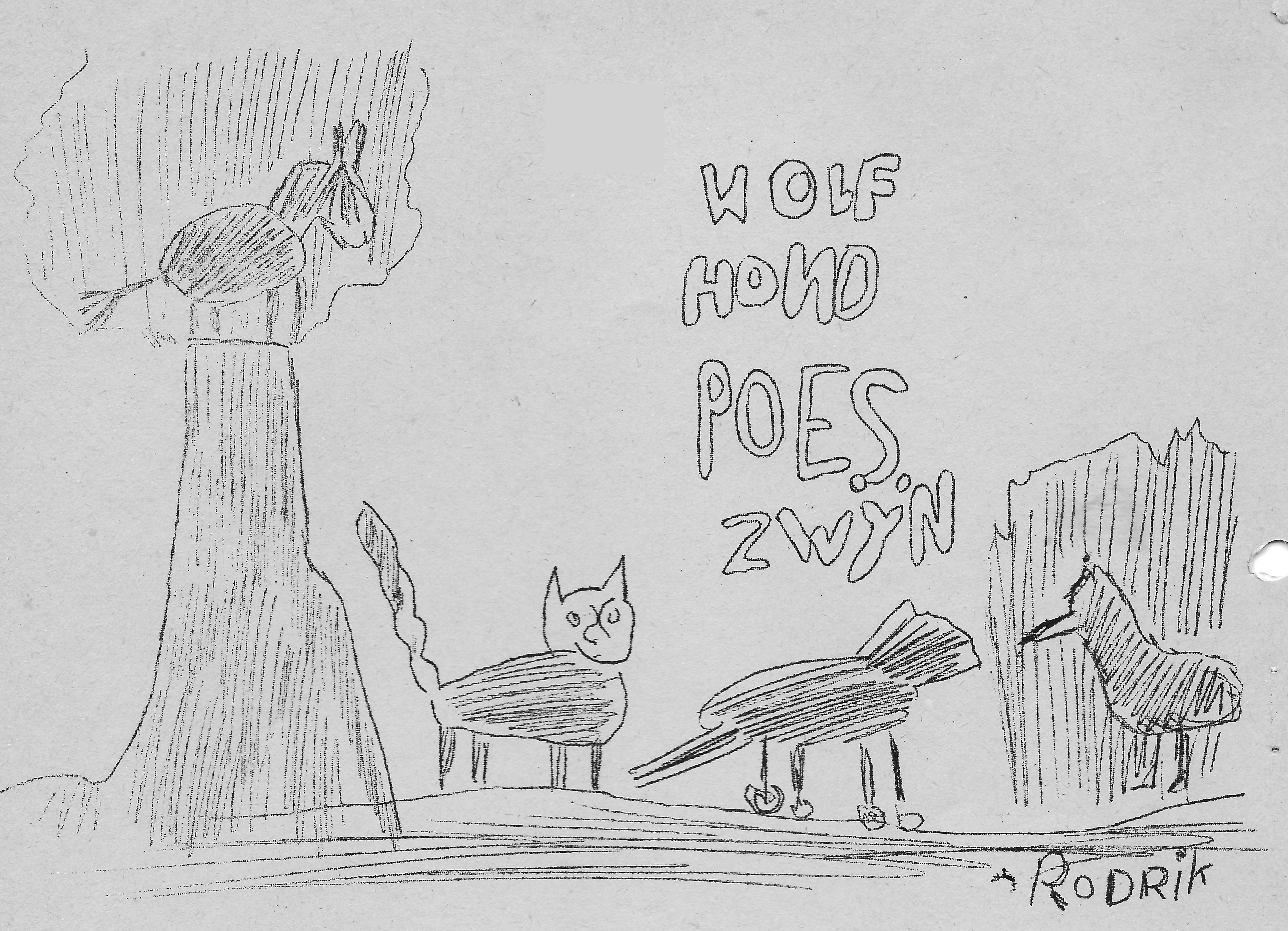 ‘Ach, hoe treurig is het leven. Ik houd niet zo van die drukke kinderen, laten die liever wegblijven. Rustig kijk ik naar mijn spiegelbeeld in het water, dan behoef ik tenminste niet steeds iets anders te zien. want daaraan heb ik een hekel. Wel kijk ik graag naar de rand van het kerkhof, wanneer er weer een mens begraven wordt. Ze kunnen zich druk maken, maar de rust van het graf wacht een ieder.