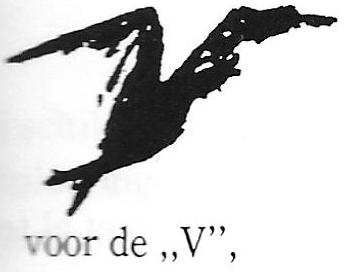 We zeggen bijvoorbeeld tegen een kind: Je hebt wel eens een vogel gezien. Denk nog eens heel goed na hoe die vogel er precies uitzag. Als ik nu dit teken (zie tekening links), dan lijkt dat wel op een vogel.2 De vogel die jij gezien hebt, ziet er wel ongeveer zo uit als de tekening die je op het bord ziet. Stel je nu voor, je zegt het woord Vogel’. Als je vogel zegt, bedoel je dit (zie tekening links). Probeer nu eens om niet vogel te zeggen, maar alleen het eerste begin van vogel. — Dan probeert men het kind alleen het begin van vogel te laten zeggen: v-v-v-v-. Kijk, nu zeg je alleen het begin van vogel. En nu is het zo, dat de mensen langzamerhand de tekening die je daar ziet makkelijker zijn gaan maken (zie tekening rechts). En als je nu het allereerste begin van vogel zegt, v-v-v-v-, dan kun je dat opschrijven. Je doet dat zo, dat je dit teken maakt. En dit teken noemen de mensen v. Je hebt dus gezien dat het woord vogel begint met de v. Nu schrijfje dat op: v. Als je het allereerste begin van vogel opschrijft, dan zeg je met je adem steeds v-v-v. Je leert dus het teken voor het begin van het woord vogel.