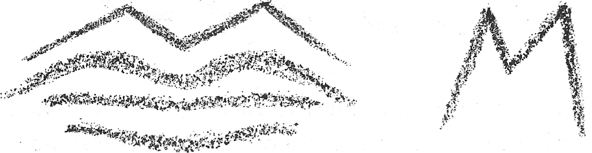 Man denke nur einmal an folgendes. Nehmen wir das Wort «Mund», im Englischen «mouth». Wenn Sie das Kind veranlassen, einen Mund zu zeichnen, aber malend zu zeichnen, Farbenkleckse hinmachen zu lassen mit roter Farbe, und dann das Kind das Wort aussprechen lassen und sagen: Nun sprich aber nicht das ganze Wort aus, sondern fange es nur an – M, und machen wir aus der Oberlippe (siehe Zeichnung) allmählich dieses M, so bekommen wir aus dem Mund, den wir zuerst gemalt haben, das M heraus. So ist nämlich in Wirklichkeit die Schrift entstanden, nur sieht man es heute den Worten schwer noch an, daß die Buchstaben Bilder waren, weil die Worte alle im Verlaufe der Sprachentwicklung verschoben worden sind. Ursprünglich hatte jeder Laut eben sein Bild, und seine Bildmöglichkeit war eindeutig.