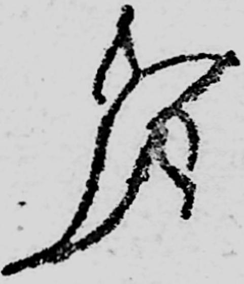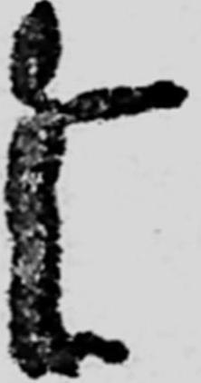 Zeichen: D, das eigentlich so sein sollte – indem Sie jetzt übergehen zur kleinen Schrift, dieses Zeichen, das kleine d geworden. – Sie können durchaus die bestehenden Buchstabenformen in dieser Weise aus solchen Figuren heraus entwickeln, die Sie als zeichnerisch dem Kinde beigebracht haben. Auf diese Weise werden Sie, immer denÜbergang von Form zu Form besprechend, niemals bloß abstrakt lehrend, das Kind vorwärtsbringen, so daß es den wirklichen Übergang findet von der zuerst aus dem Zeichnen herausgeholten Form zu jener Form, die nun der heutige Buchstabe, wenn er geschrieben wird, wirklich hat.