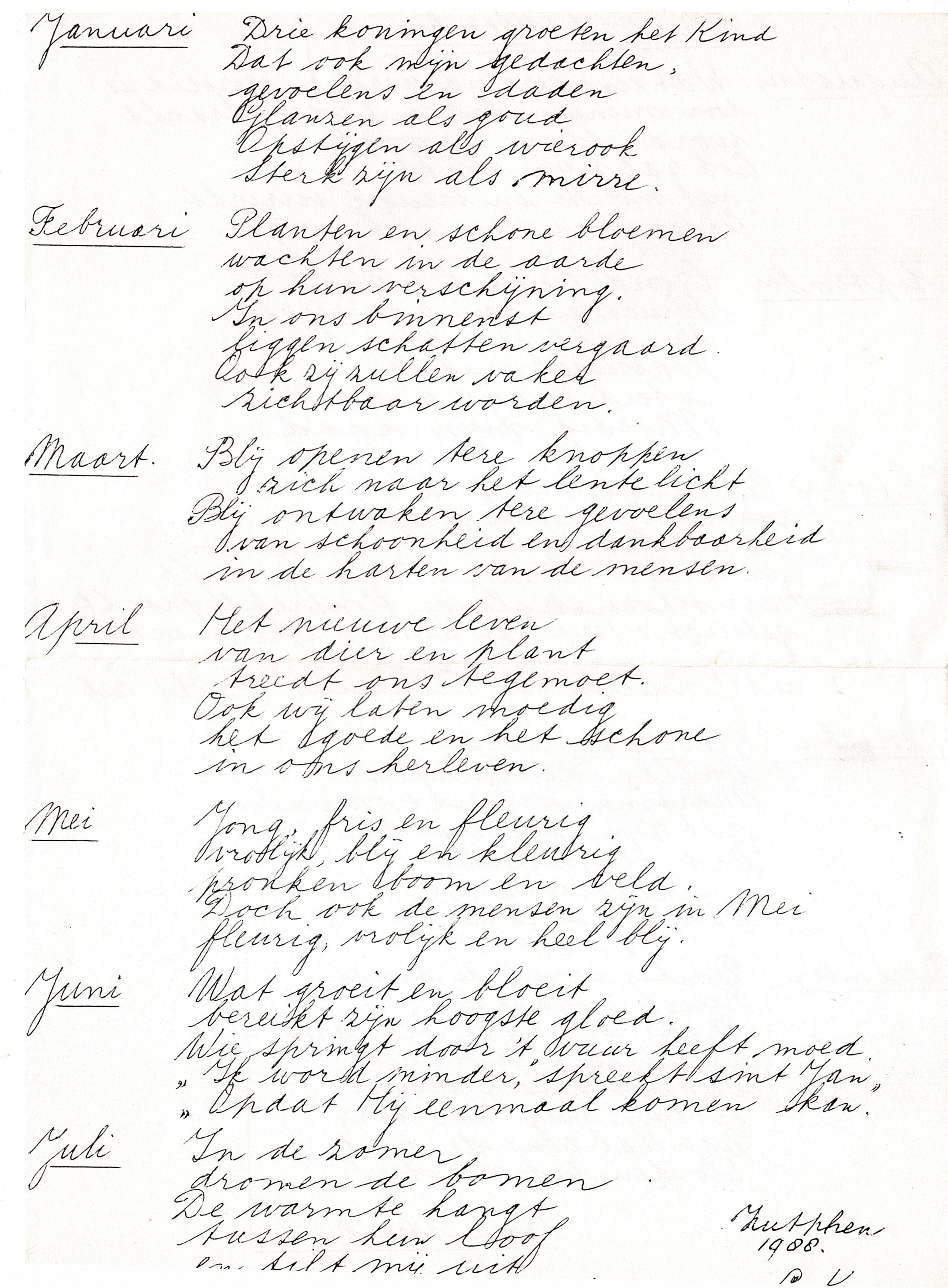 Ter voorbereiding las ik veel ‘Vrije Opvoedkunsten'[4] en het verbaasde me telkens weer dat de meeste artikelen, hoewel al jaren oud, toch heel actueel bleken te zijn. Sommige auteurs hielden ook voordrachten en toen ik die begon te bezoeken, kreeg ik een voor mij heel acceptabel wereldbeeld uitgelegd. Zelfs het begrip ‘geest’ kreeg een inhoud waar ik wél wat mee kon.