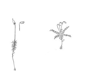 Het mos is eigenlijk al een echt plantje. Het is groen, heeft stengel en blaadjes en komt in vele verschillende vormen voor. Het heeft veel vocht nodig en maar een beetje zon. Het mos steunt echter nog geheel op de aarde, de stengels zijn nog niet krachtig en zelfstandig. Zo kunnen we dan mos vergelijken met een kind dat net kan staan en zijn eerste woordjes stamelt.