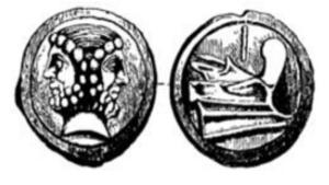 Afbeelding van een munt in het Nordisk familjebok, een encyclopedie.