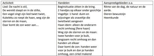 huishoudelijke bezigheden, spel met de poppenkinderen en alle lichaamsversjes.