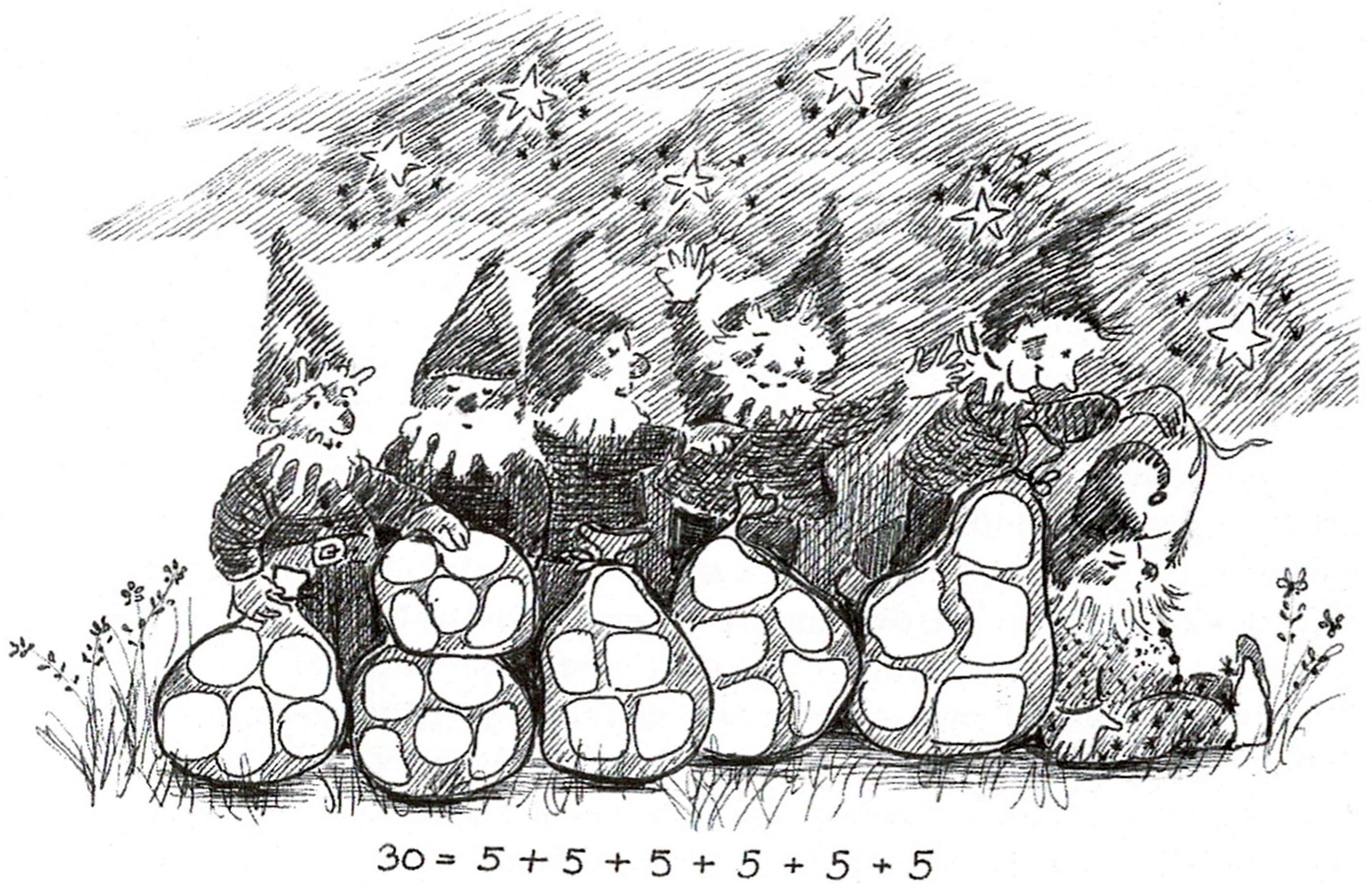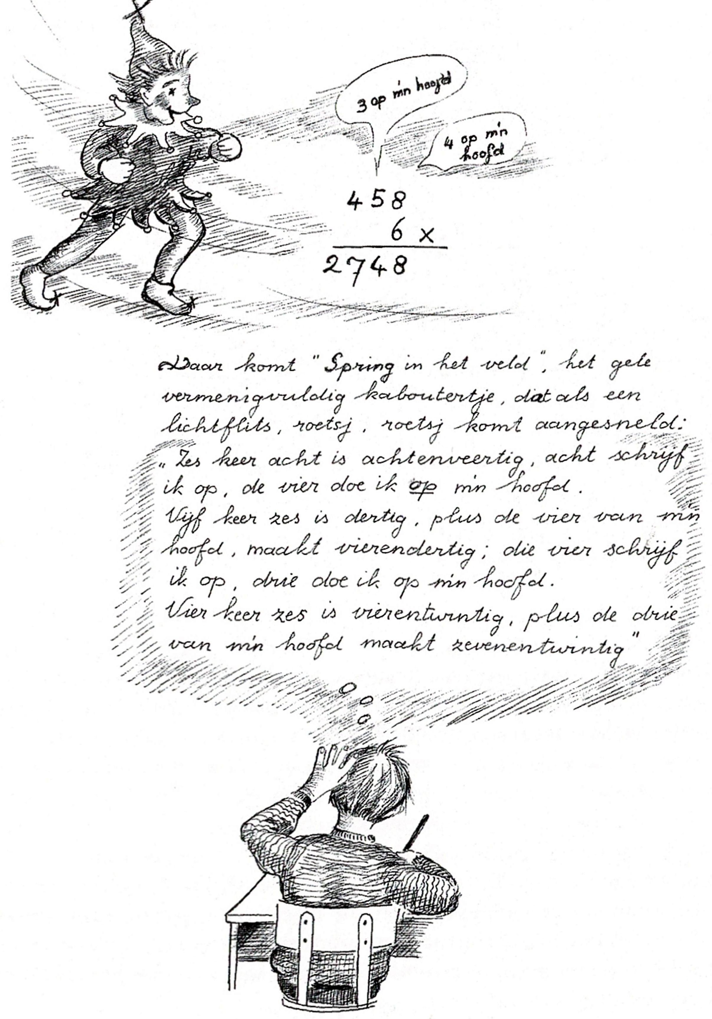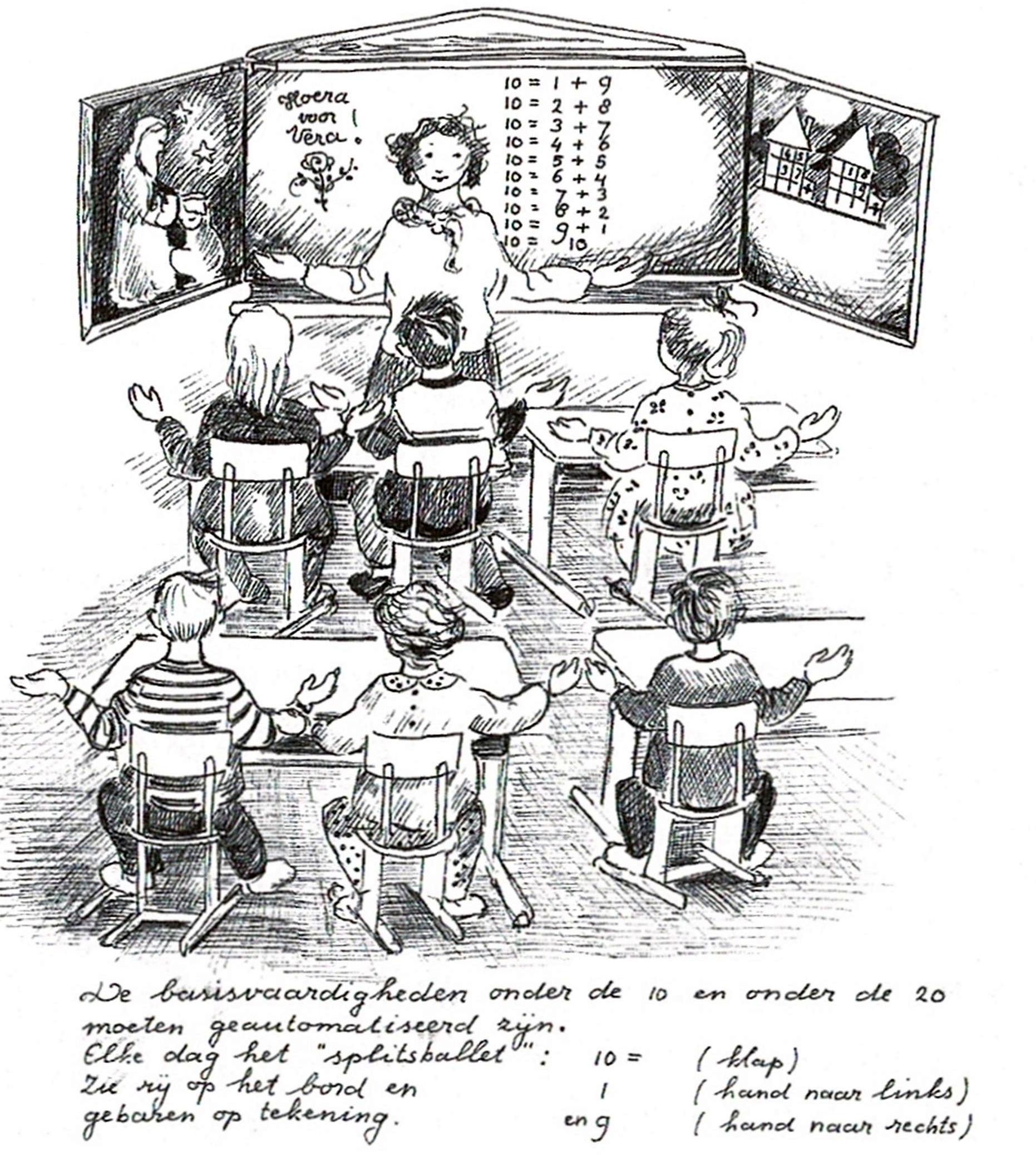 Je zou kleuters door lopen en zingen best de tafels kunnen aanleren, maar we ervaren dit als weinig zinvol. Er moet immers een inzicht (wat is vermenigvuldigen?) aan vooraf gaan en juist dit inzicht kan een jong kind in het algemeen nog niet bevatten. Pas als de nabootsingskrachten afnemen, zo omstreeks de tandenwisseling, kan het kind de stap van spiegeling naar bespiegeling zetten. Wat het eerst deed zonder bewustmaking, kan nu reflectief beleefd en doorschouwd worden. Dat geldt zowel hetgeen tot de parate kennis moet gaan behoren (5 x 7 = 35) als de handige oplossingsaanpakken (5 x 7 is de helft van 10 x 7). Bij het rekenen worden dus twee vermogens aangesproken: het reflecteren -het bewustmaken van een eerdere rekenhandeling- en het vrijkomende wiskundige vermogen, dat aanvankelijk onbewust was en zich op fysiek vlak manifesteerde in ritme en beweging.