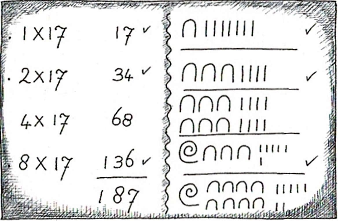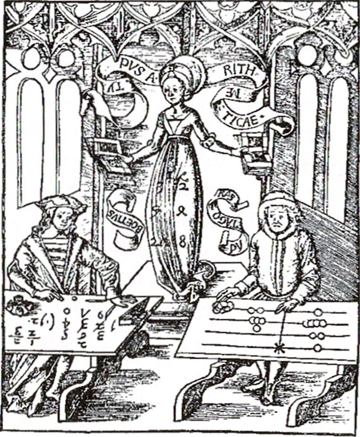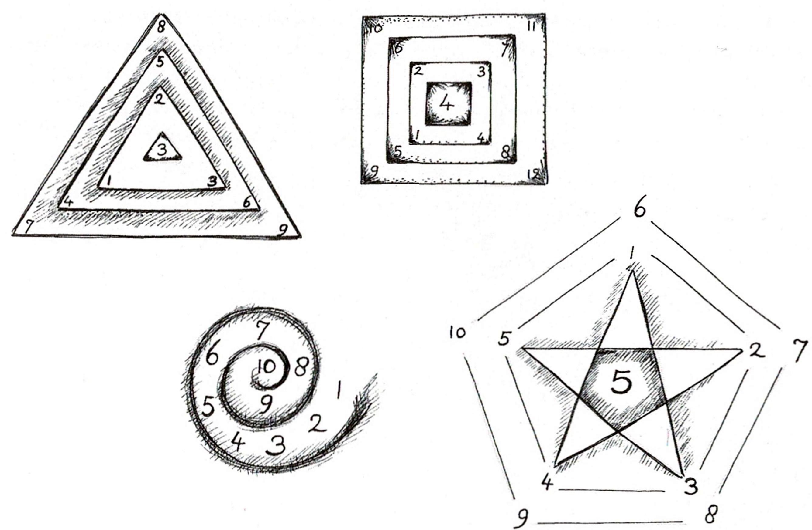 Een goed voorbeeld biedt de Egyptische cultuur met zijn ongeëvenaarde bouwwerken en voortreffelijke landbouw. De Egyptenaren kenden het tientallig stelsel, breuken en getallensymbolen tot 1.000.000! Ze maakten de cultuur-historische stap van de kwalitatieve naar de kwantitatieve benadering van de wereld. Haar oorsprong schreven zij toe aan Thot (Griekse cultuur: Hermes Trismegistos). Uit de Thot-mysteriën stamt de uitdrukking: Zo boven, zo beneden. Zo werd Thot de inspirator van het inzicht dat in Egypte ontstond, dat de fysieke wereld een afspiegeling van de goddelijke wereld is; een soort godenschrift. Het lezen van dit godenschrift vormde de basis voor de Egyptische wetenschappen. Tot in de Middeleeuwen leefde deze idee over de herkomst van de wetenschappen nog voort als de leer van de zeven vrije kunsten, voorgesteld als vrouwengestalten. Leerzaam in verband met ons rekenthema is de volgorde waarin deze kunsten werden beoefend. Allereerst ging het om de beheersing van het ‘trivium’: grammatica (de beheersing van het juiste woord), dialectica (het vermogen om gedachten onder woorden te brengen) en de rhetorica (het middel om invloed uit te oefenen op anderen). Deze vermogens waren noodzakelijk om in de geheimen van het ‘quadrivium’ door te dringen: de geometria, de aritmetica, de musica en de astronomia. Het quadrivium vinden we bijvoorbeeld terug in het werk van Pythagoras, in de door hem gevonden wetmatigheden in de meetkunde en de muziek. Ook in de individuele ontwikkeling gaat het taalvermogen vooraf aan het rekenvermogen. Of moeten we zeggen: het rekenen zit dieper, in het gebied van de onderste zintuigen? Spreken leer je door nabootsing. Bij het rekenen ligt dat anders. 17