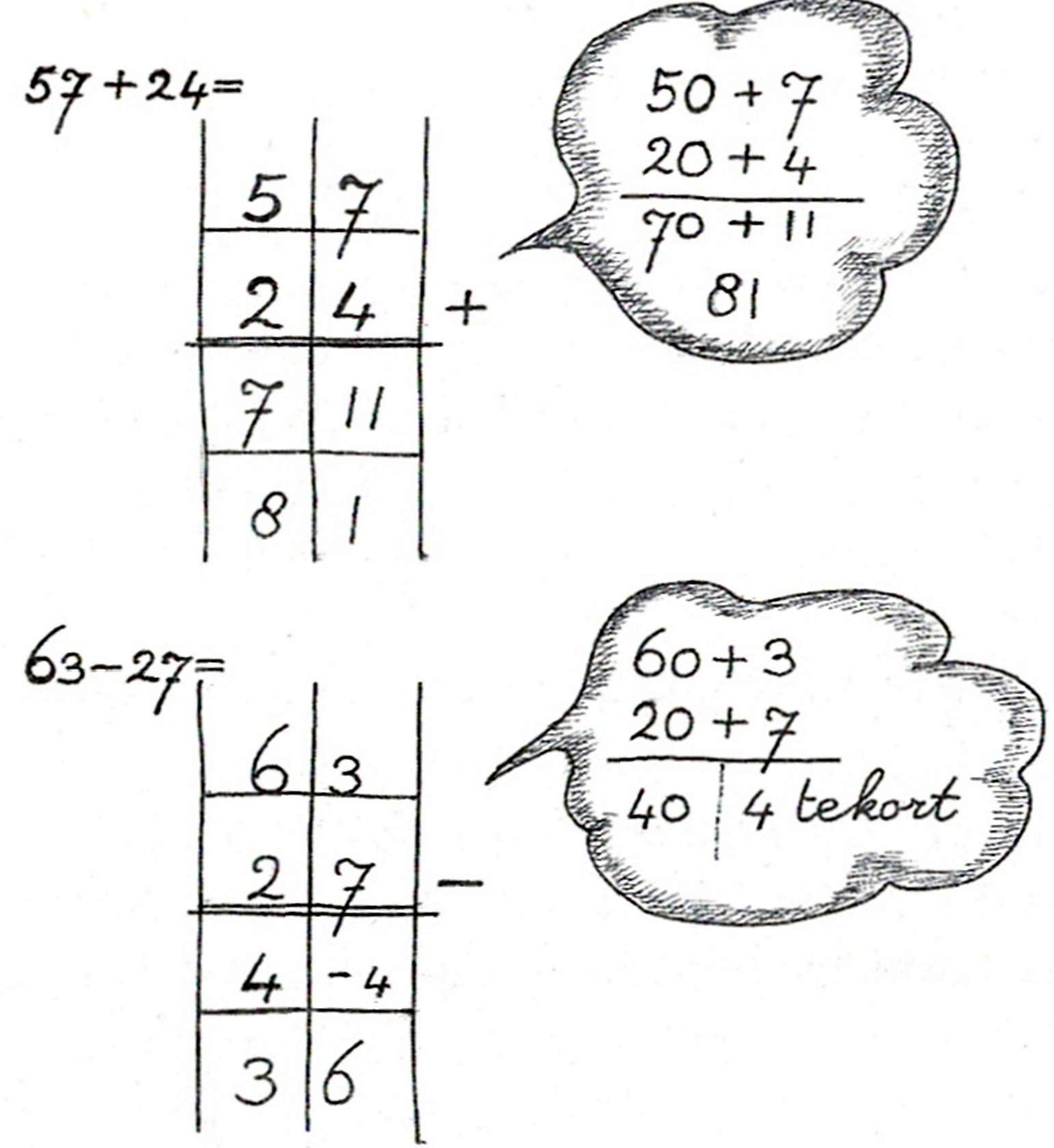 A. Treffers,E. de Moor (1990) Proeve van een nationaal programma voor het reken-wiskundeonderwijs op de basisschool. Deel 2: Basisvaardigheden en cijferen, Tilburg: Zwijsen.