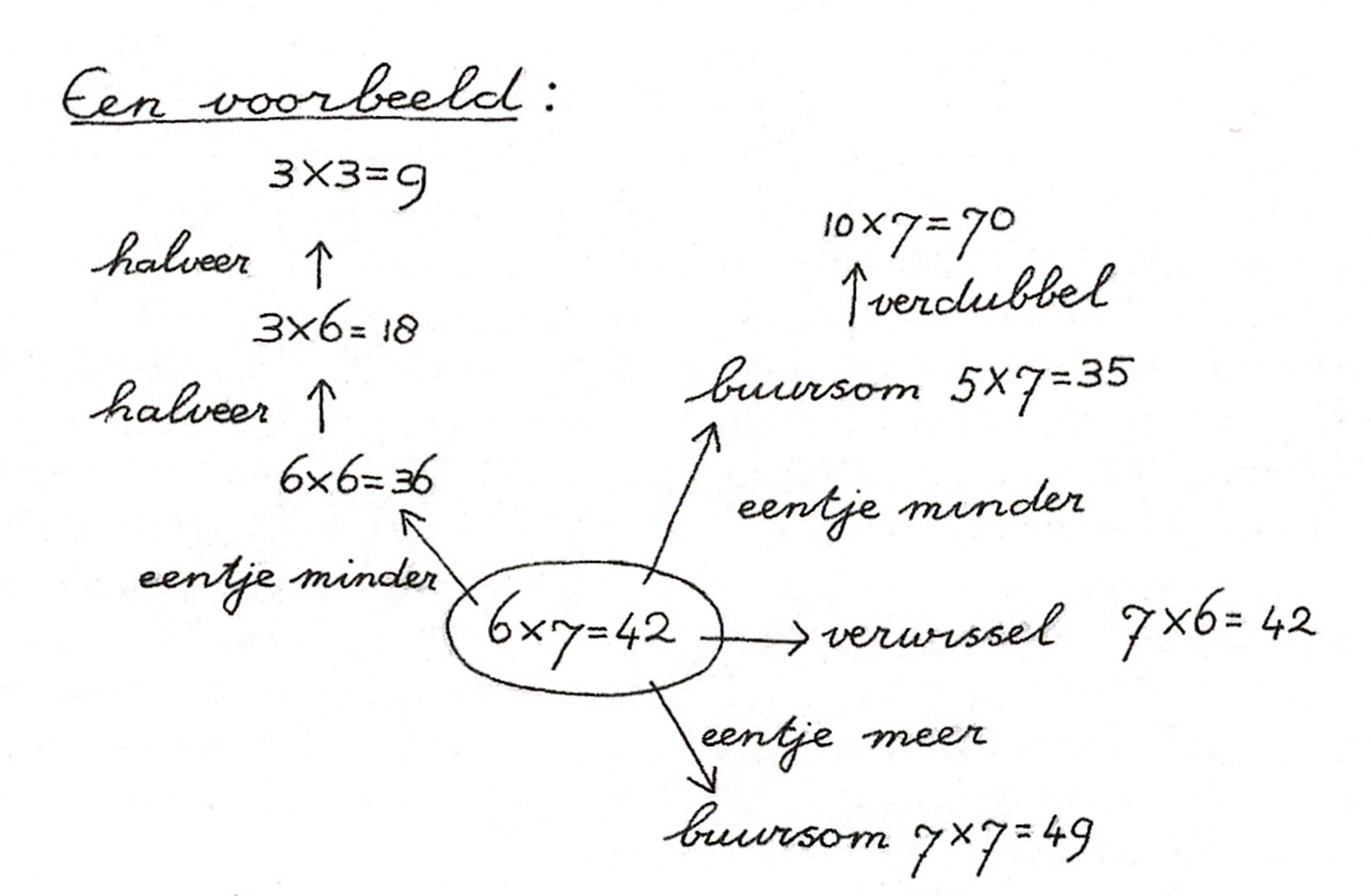 En 8 x 7 bijvoorbeeld zo: ‘8 x 7 = 7 x 8; 5 x 8 = 40, 2 x 8 = 16, dus … 56.’ Men ruimt tijd in voor reflectieve momenten, waarbij niet alleen de uitkomsten, maar ook de handige rekenwijzen beschouwd worden. En de kinderen leren de eigen kennis te onderzoeken: wat weet je wel, wat weet je nog niet echt goed en welke dingen vergeet je steeds weer? Dan volgt er een fase van gerichte oefening en reproductie. Tenslotte moet hetgeen verworven is, ook ‘onderhouden’ worden: consolidatie.