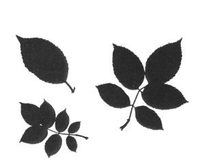 DE ROOS Wat spreidt deze haar veernervige blaadjes zorgvuldig uit en hoe ze die uit verschillende blaadjes samenstelt. Ieder blaadje heeft een apart steeltje en alle randjes zijn van tandjes voorzien. Ze neemt er dan ook de tijd voor, de roos. Voor ze haar bloemknoppen laat komen, moeten er eerst langere bladscheuten gegroeid zijn en tussen de stengelbladeren en de bloembladeren staat een groene kelk, die er heel anders uitziet dan de stengelblaadjes. Nooit kan het bij de roos voorkomen dat stengelblaadjes en bloemblaadjes door elkaar gehaald worden. Alleen al doordat de roos een houtachtig gewas is, kun je weten dat ze doortrokken is met aardekracht. De aarde helpt mee, wanneer de roos haar stekelige twijgen in bevallige bogen naar alle richtingen laat gaan. Aan het puntje neigen ze zich weer naar de aarde. En wie eens geprobeerd heeft een wilde rozenstruik uit de grond te trekken, zal gemerkt hebben, hoe stevig ze met de aarde is verbonden door haar wortels. Onder de grond zit nog eens een boompje, maar dan omgekeerd. Blad van de heggenroos, een tuinroos en van de appelboom.