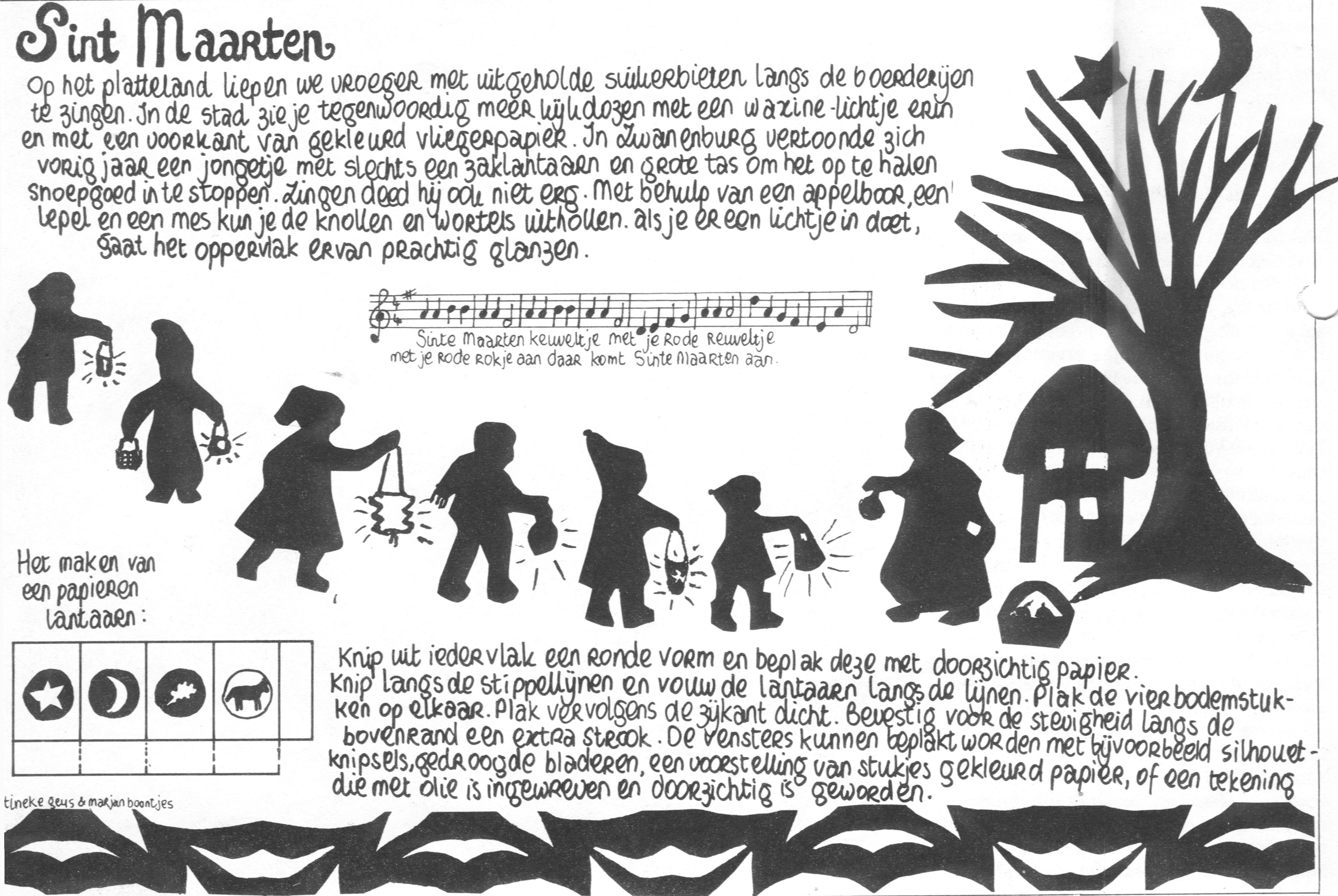 Hoe het u vergaat weet ik niet, maar ik word elk jaar weer verrast door het Michaëlsfeest. Nog nazinderend van de zomer lukt het me nog net om de voorbereidingen te treffen. Het is alsof je met een schok wakker wordt; ongeveer het gevoel dat je hebt als je na het aflopen van de wekker nog even blijft liggen en dan ineens ziet dat het kwart voor acht is in plaats van kwart voor zeven. Je bent nog net op tijd op je werk, maar vraag niet hoe. Soms nog tijdens de dag zelf, maar anders in ieder geval in de dagen erna hoor je om je heen dezelfde geluiden: de plannen die we voor de zomer hadden, moeten nu maar eens worden uitgevoerd. Voor een Michaëlsfeest op school, kunnen spelen en opdrachten die moed en slagvaardigheid oproepen, worden gemaakt en bedacht. Met mikspelletjes, zoals in zijn eenvoudigste vorm de spijker op de kop slaan, boogschieten of het moeilijke speerwerpen, wordt gericht op het gestelde doel. Ook opdrachten en speurtochten waarbij de richting en de goede weg zelf moeten worden gevonden en waarbij moeilijkheden worden overwonnen, vormen een goed motief voor zo’n feest.