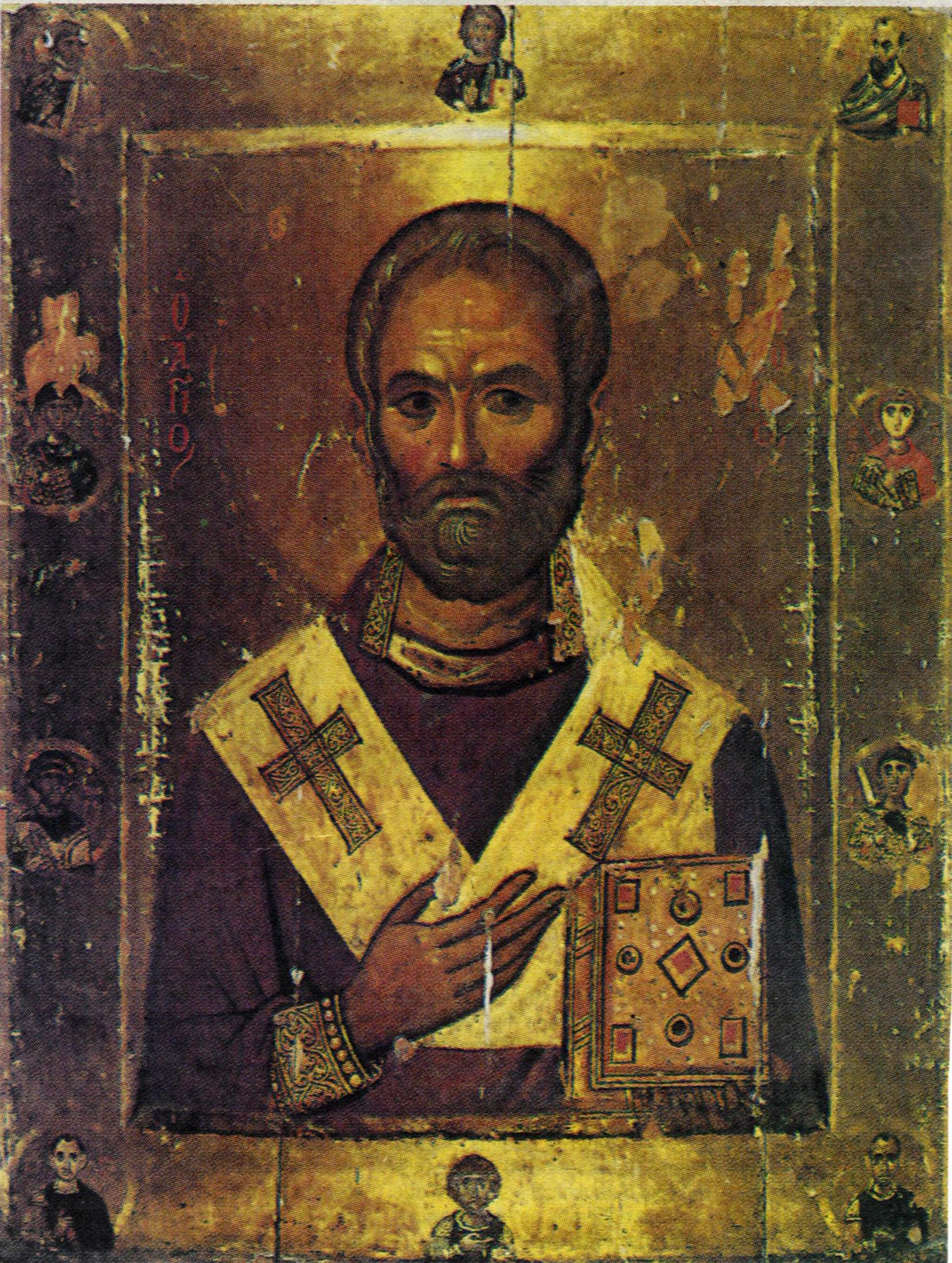 Eigenlijk verbaast het ons niet, als wij horen, dat er twee bisschoppen Nicolaas geleefd hebben. Van de eerste is historisch alleen bekend, dat hij als bisschop van Myra, heeft deelgenomen aan het concilie van Nicea in 325, waar hij zijn tegenstander, een Ariaan, een klinkende oorvijg zou hebben toegediend (een stijl, die ons niet vreemd is!), dat hij op 70-jarige leeftijd in 341 (343?) is gestorven en in Myra, sommigen zeggen in Pharrao, is begraven.