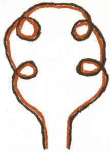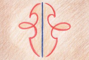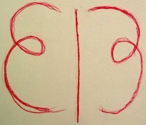 Wanneer je de voorbeelden die Steiner geeft op het gebied van de symmetrie, bestudeert, zie je de axiale symmetrie, het spiegelen en de a-symmetrische symmetrie. Bij hem zijn het allemaal ronde vormen, met of zonder lussen.